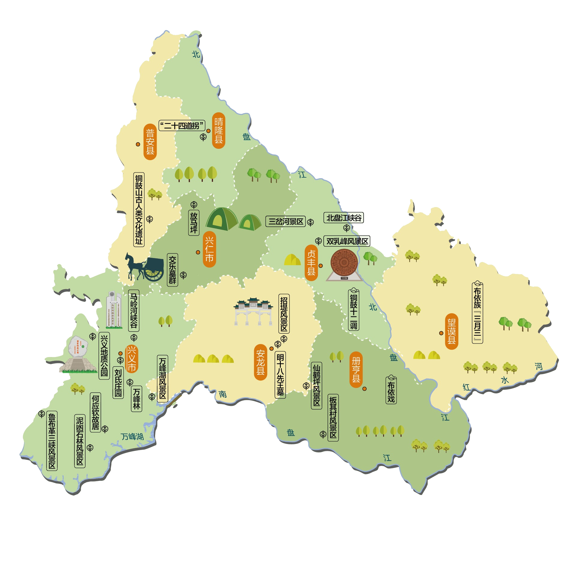 黔西南布依族苗族自治州,简称“黔西南州” ,首府驻兴义市, 是贵州的9个地级行政区之一, 位于云南、广西、贵州三省(区)结合部。贵州省西南部。珠江上游。云贵高原东南端。全州总面积16804平方千米。境内分布有布依族、苗族、回族、汉族等35个民族。黔西南州黄金分布广,储量大,品质高,2005年,被中国黄金协会命名为“中国金州” 黔西南州山川秀丽,气候宜人,文化底蕴深厚,清代乾隆年间创办了著名的笔山书院。黔西南州现辖2个县级市、6个县。 县级市:兴义市、兴仁市 县:普安县、晴隆县、贞丰县、望谟县、册亨县、安龙县