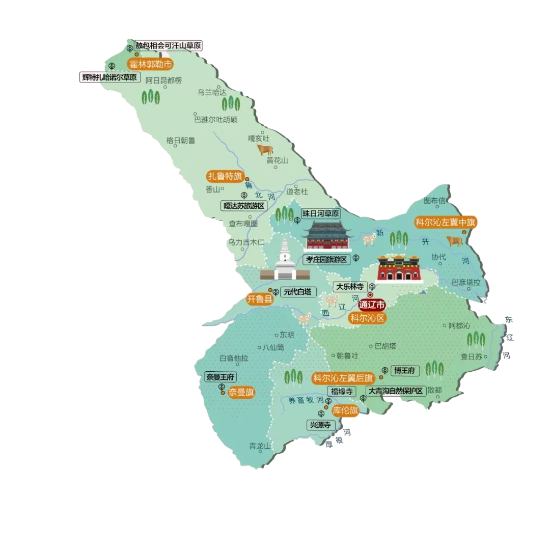 通辽市,原称“哲里木盟”,是中国内蒙古自治区下辖地级市,地处内蒙古自治区东部,东靠吉林省四平市,西接赤峰市、锡林郭勒盟,南依辽宁省沈阳市、阜新市和铁岭市,北与兴安盟以及吉林省白城市、松原市为邻,地处中纬度,属中温带干旱和半干旱大陆性季风气候,总面积59535平方千米。通辽是蒙古民族的发祥地之一,科尔沁草原曾产生和流传着著名的科尔沁三大叙事民歌(韩秀英、达那巴拉、嘎达梅林)和上千首短调民歌。通辽境内有京通、通让、大郑、通霍、集通5条铁路交汇,已开通“通满欧”国际货运班列,是国家实施“一带一路”和内蒙古自治区推进向北开放的重要战略节点,地处环渤海经济圈、东北经济区和东北亚经济圈,是东北与华北的交汇中心;通辽市现辖1个市辖区、1个县、5个旗,代管1个县级市。 市辖区:科尔沁区 县级市:霍林郭勒市 县:开鲁县 旗:科尔沁左翼中旗、科尔沁左翼后旗、库伦旗、奈曼旗、扎鲁特旗