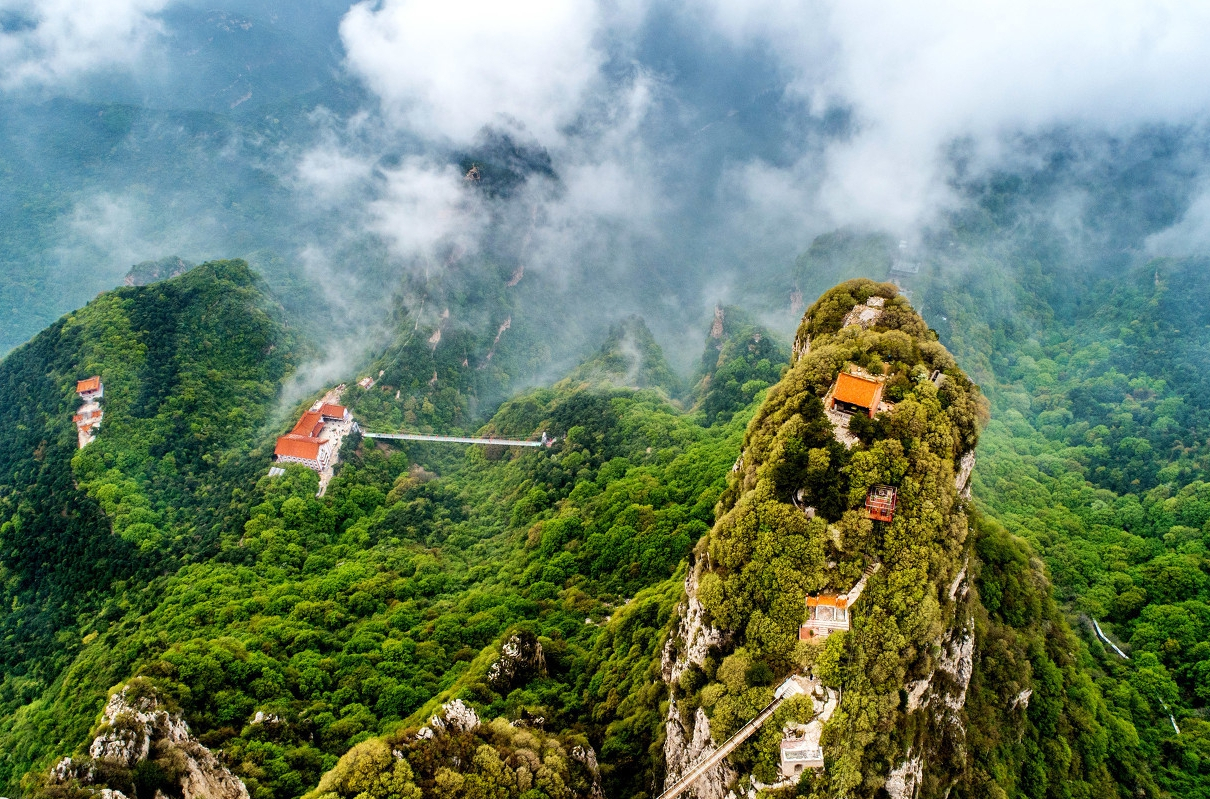 “拜佛五台山,问道五老峰”,位于山西永济的五老峰,与晋北佛教圣地五台山南北对峙,与西岳华山齐名天下,被称为当之无愧的“道教名山”。 南有道家五老峰,北有佛家五台山。永济市东南胜景五老峰,因古代五老在此为帝王授《河图》《洛书》的传说而得名。五老峰由玉柱峰、东锦屏峰、西锦屏峰、棋盘峰和太乙峰五峰构成,松涛云海、流泉飞瀑、奇峰怪石,一步一景,变化万千。主峰玉柱峰,壁立千仞,常年云雾缭绕,峰顶如同海中岛屿,一派人间仙境。
