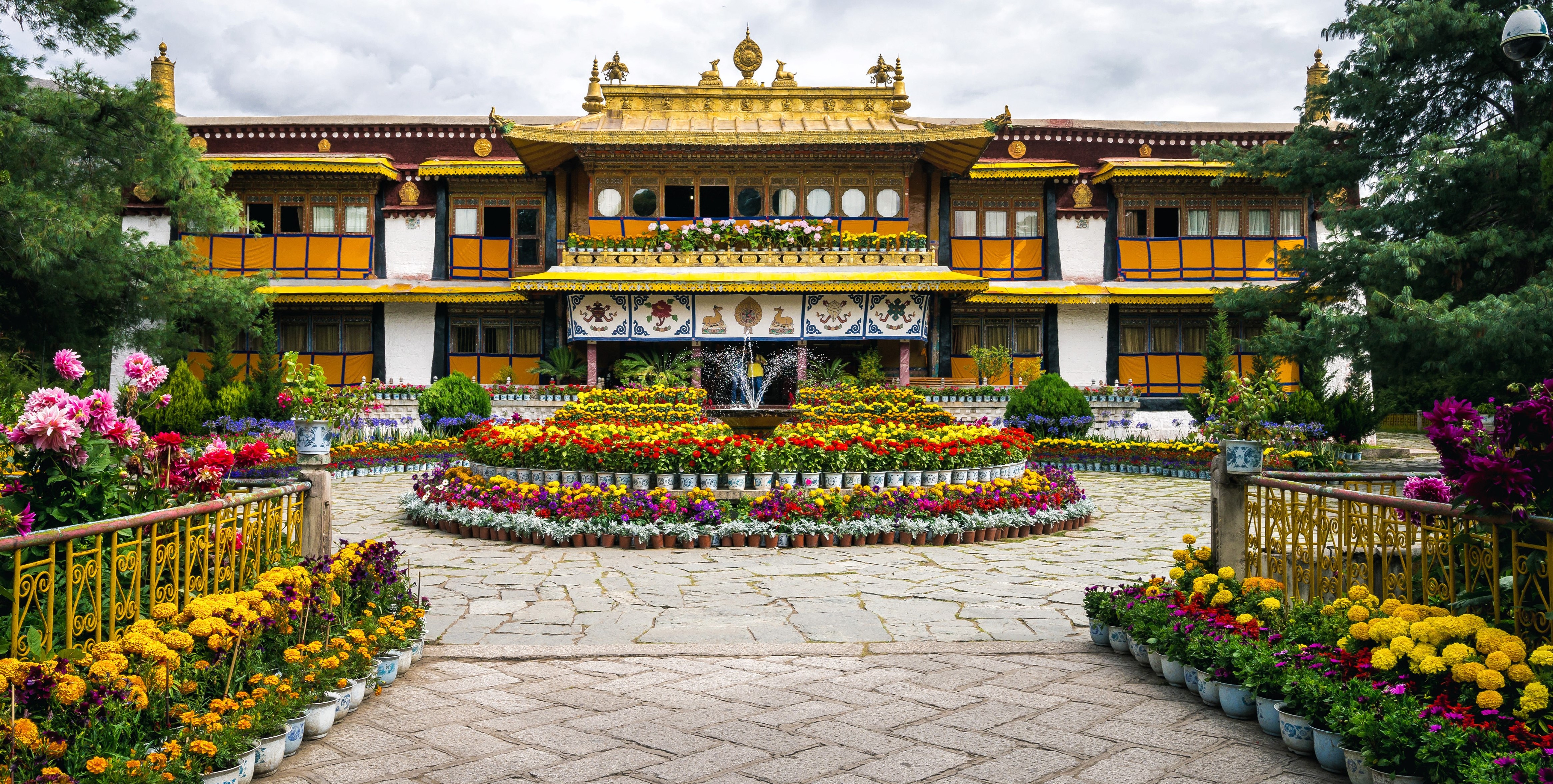 罗布林卡位于西藏拉萨西郊。始建于十八世纪40年代(达赖七世),是历代达赖喇嘛消夏理政的地方,是一座典型的藏式风格园林。经过二百多年的扩建,全园占地36万平方米,园内有植物100余种,不仅有拉萨地区常见花木,而且有取自喜马拉雅山南北麓的奇花异草,还有从内地移植或从国外引进的名贵花卉,堪称高原植物园。建筑以格桑颇章、金色颇章、达登明久颇章为主体,有房374间,是西藏人造园林中规模最大、风景最佳的、古迹最多的园林。罗布林卡意为宝贝园林。