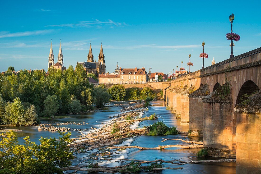 Moulins ist eine kleine historische Stadt im Zentrum von Frankreich. Sie liegt in der Region Auvergne-Rhône-Alpes und am Ufer des Flusses Allier. Moulins ist die Hauptstadt des Départements Allier.