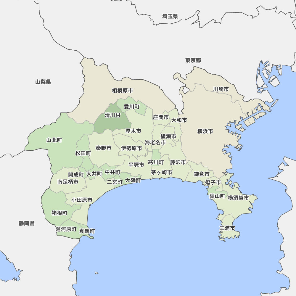 神奈川县辖有19市、13町、1村,县厅所在地是横滨市。神奈川县拥有横滨市、川崎市、相模原市等3个政令指定都市,是日本唯一拥有两个以上政令指定都市的一级行政区。县名“神奈川”,由来于东海道的宿场町神奈川宿(位于现横滨市神奈川区),以及幕末时设置的神奈川奉行所(位于现横滨市西区红叶丘)[4][5]。