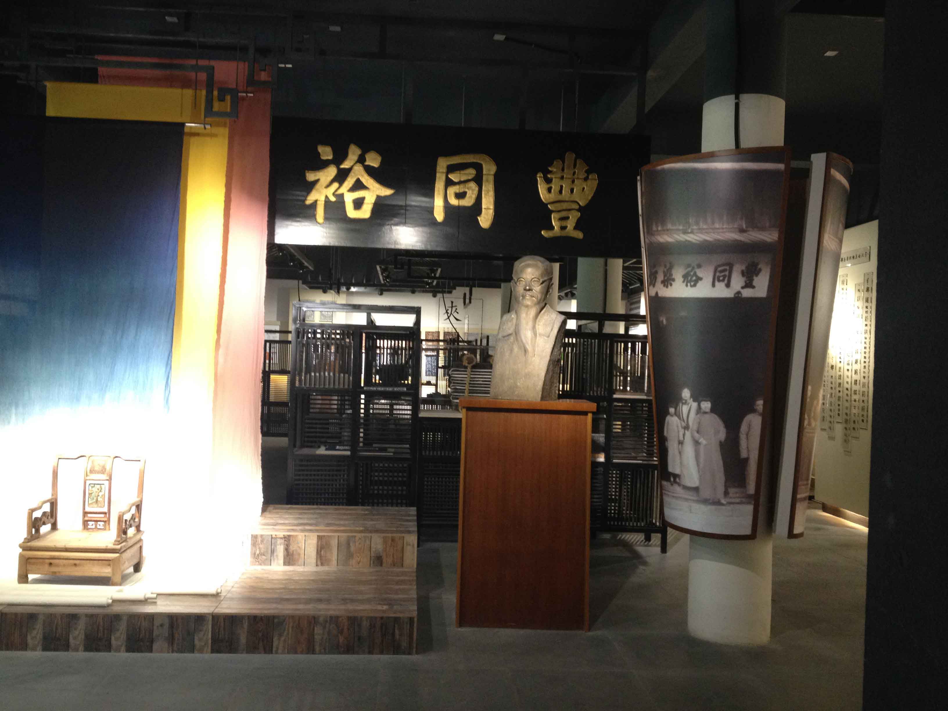 古老蓝印布艺染坊,中华老字号,丰同裕是浙江省桐乡市石门镇一家蓝印布艺染坊,由丰子恺祖父丰小康于1846年创办,原址位于石门湾后河西岸,主营天然蓝靛染料印染土布、土绸业务,其蓝白相间图案具有江南特色。
