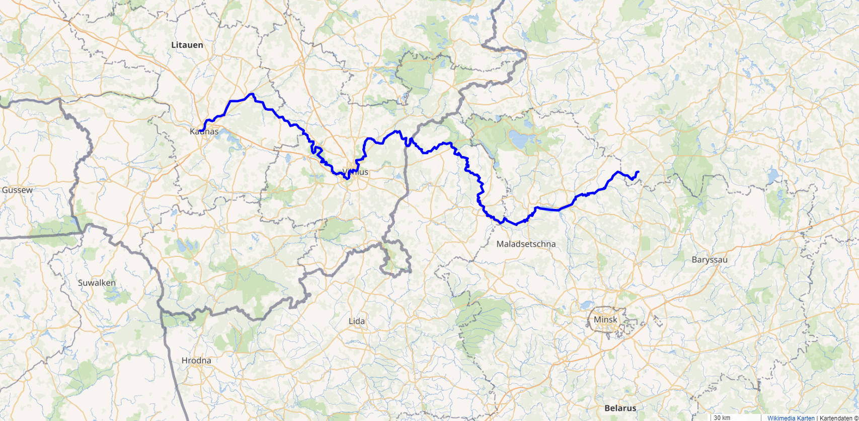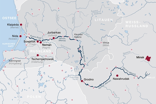 Die Memel, auch Njemen, (litauisch Nemunas , belarussisch Нёман Njoman, russisch Неман Neman, polnisch Niemen) ist ein 937 km langer Strom, der von Belarus über Litauen in das Kurische Haff und die Ostsee fließt. In einem kurzen Abschnitt von ca. 15 km markiert sie die litauische Grenze zu Belarus, am Unterlauf die Grenze zur russischen Oblast Kaliningrad.
