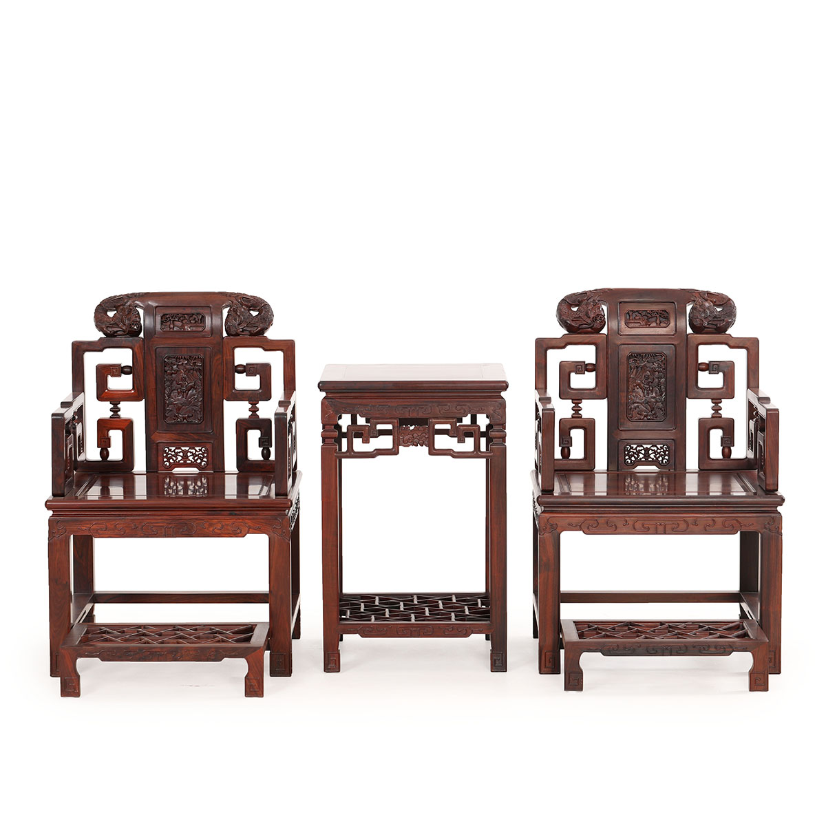 太师椅是中国家具中唯一用官职来命名的椅子,原为官家之椅,是权力和地位的象征。它最早使用于宋代,最初的形式是一种类似于交椅的椅具。太师椅最能体现清代家具的造型特点,它体态宽大,靠背与扶手连成一片,形成一个三扇、五扇或者是多扇的围屏。