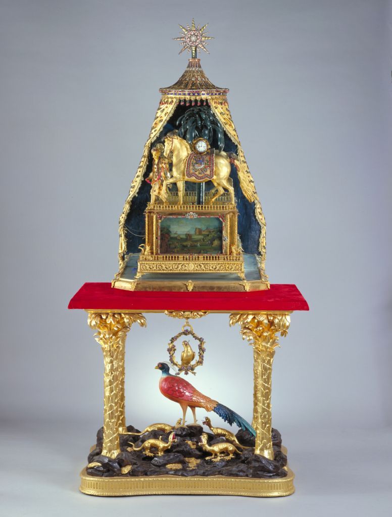 铜镀金雉鸡山石骑士牵马表/Gold-plated Pheasant Mountain Horse Knight