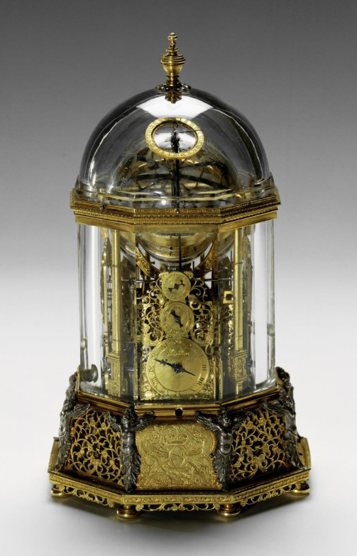 Jost Bürgis Bergkristalluhr mit eingebautem transparentem Himmelsglobus, hergestellt 1622/27 in Prag und heute in der Habsburgischen Kunstkammer des Kunsthistorischen Museums in Wien