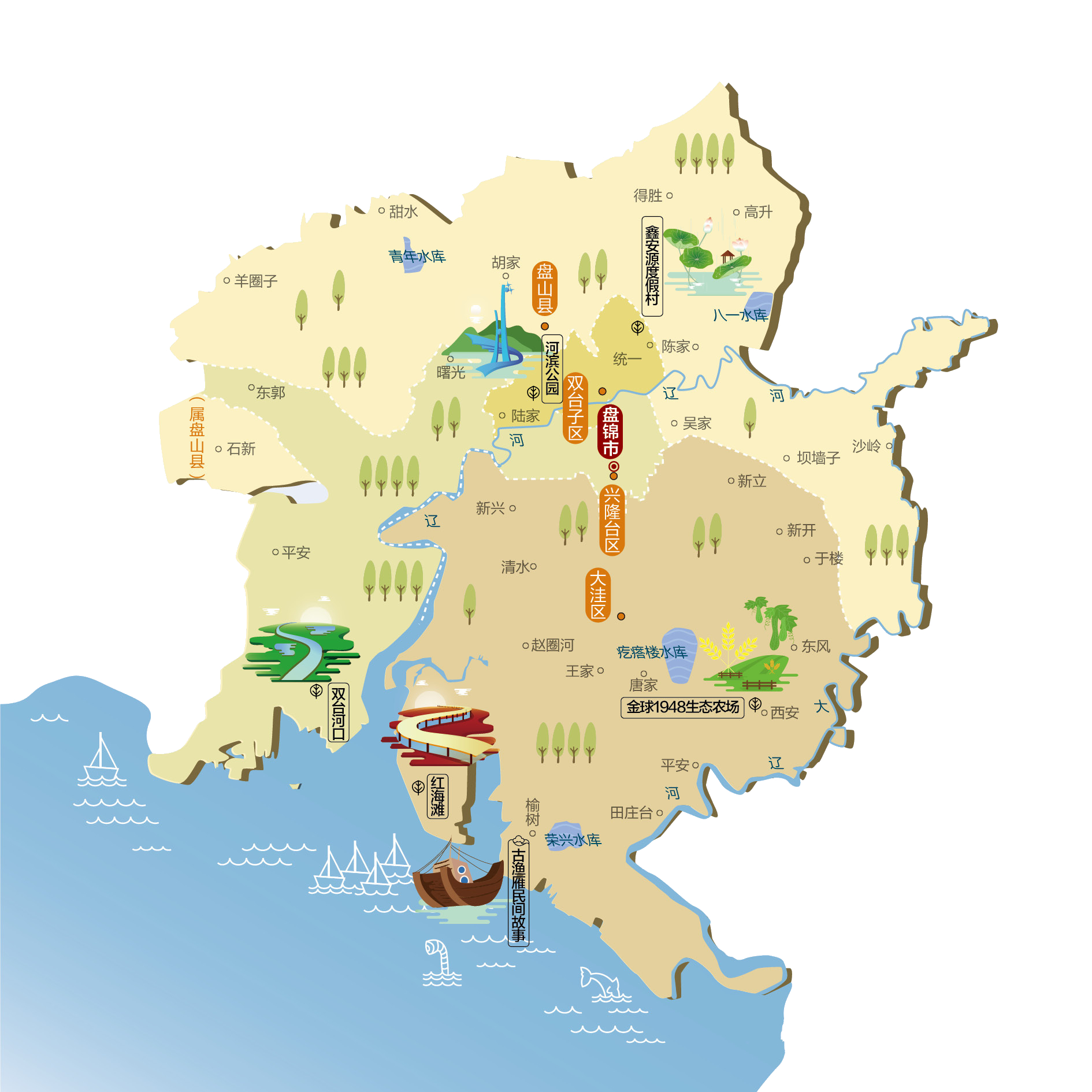 盘锦市,中国辽宁省下辖地级市,别称鹤乡、油城、湿地之都,国务院批复确定的中国重要的石油、石化工业基地,辽宁沿海经济带重要的中心城市之一。 盘锦位于辽宁省西南部,地处辽河三角洲中心地带、辽河入海口处,地势平坦,多水无山,是中国最北端的海岸线,总面积4062.34平方千米。盘锦是辽河油田总部所在地,是“石化新城”,缘油而建、因油而兴,地下蕴藏着丰富的石油、天然气、井盐等矿藏资源;盘锦地处北温带,属暖温带大陆性半湿润季风气候。四季分明,雨热同季,干冷同期,温度适宜,光照充裕。盘锦市现辖3个市辖区、1个县。 市辖区:双台子区、兴隆台区、大洼区 县:盘山县