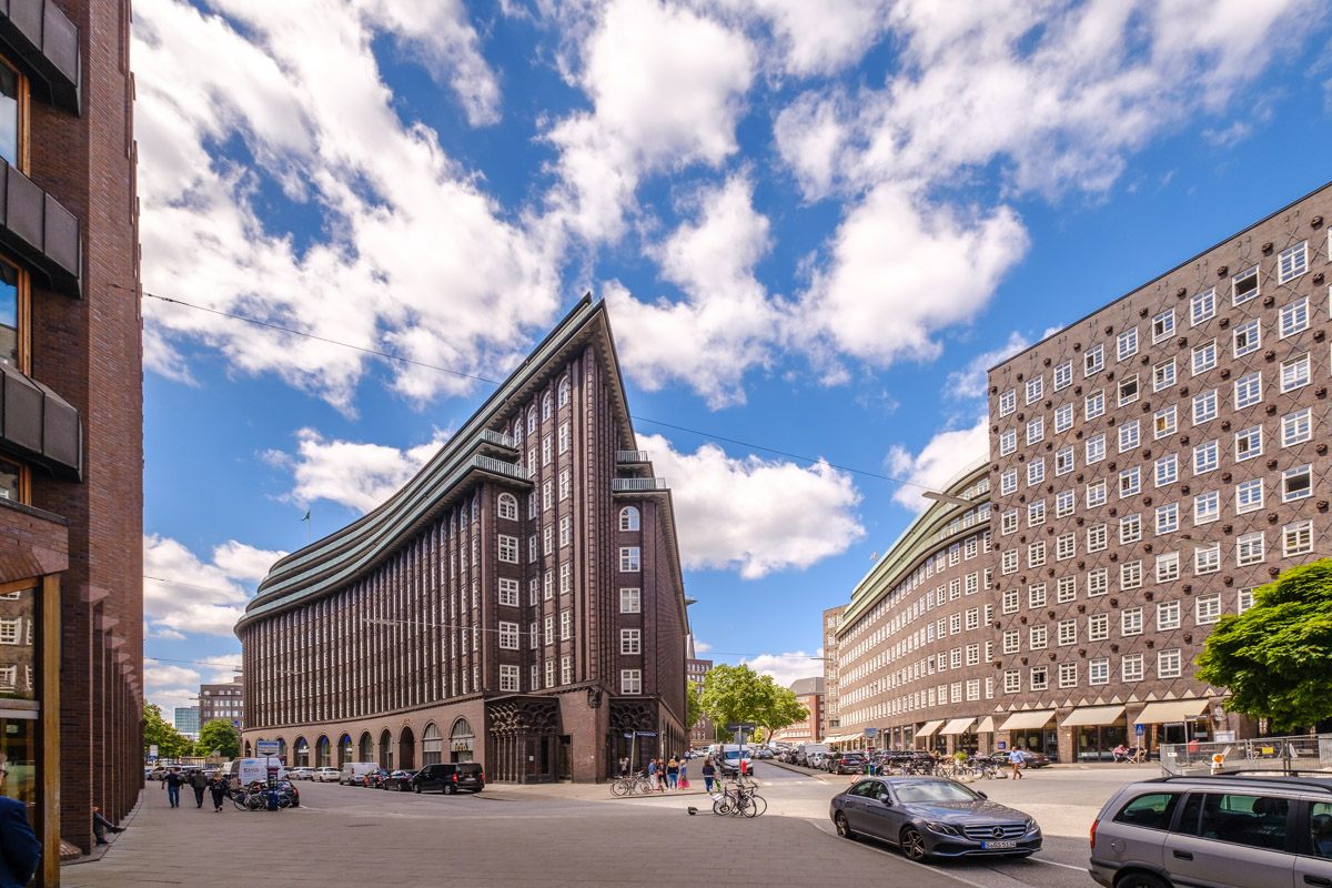Kontorhausviertel 位于汉堡历史悠久的市中心东南部,由多达十层的大型办公楼组成,具有烤砖表现主义风格和 20 世纪早期的其他现代风格。该街区建于第一次世界大战和第二次世界大战之间,由当时的汉堡高级建筑总监弗里茨-舒马赫(Fritz Schumacher)负责整体规划。2015 年 7 月 5 日,Burchard 广场周围的 Kontorhausviertel 中心区与邻近的 Speicherstadt 仓库区和 Kontorhausviertel 与 Chilehaus 一起被联合国教科文组织宣布为世界文化遗产。