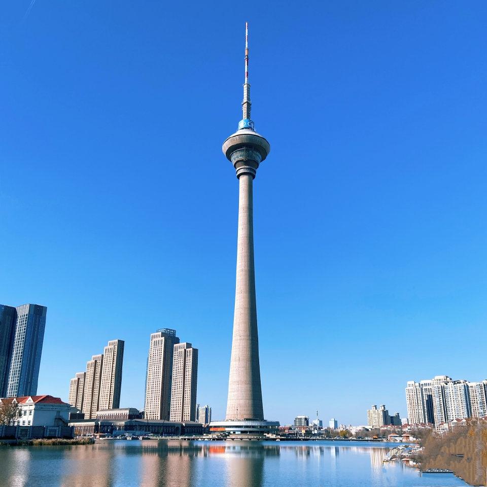 天津广播电视塔,又称天塔,为天津市电视调频广播发射中心,坐落于于天津市河西区卫津南路1号,始建于1988年6月5日,历时3年4个月,建高338米,1991年10月1日竣工时是亚洲第一高塔。天津广播电视塔建设总投资17,500万元,占地面积22公顷,建筑面积11500平方米,塔尖高415.2米,重4万余吨。截至2018年6月,天塔是中国第三高塔和世界第七高塔。天塔周围的22公顷水面名为“天塔湖”。天津天塔湖风景区被评为中国国家4A级旅游景区。天津广播电视塔也被誉为津门十景的“天塔旋云”。