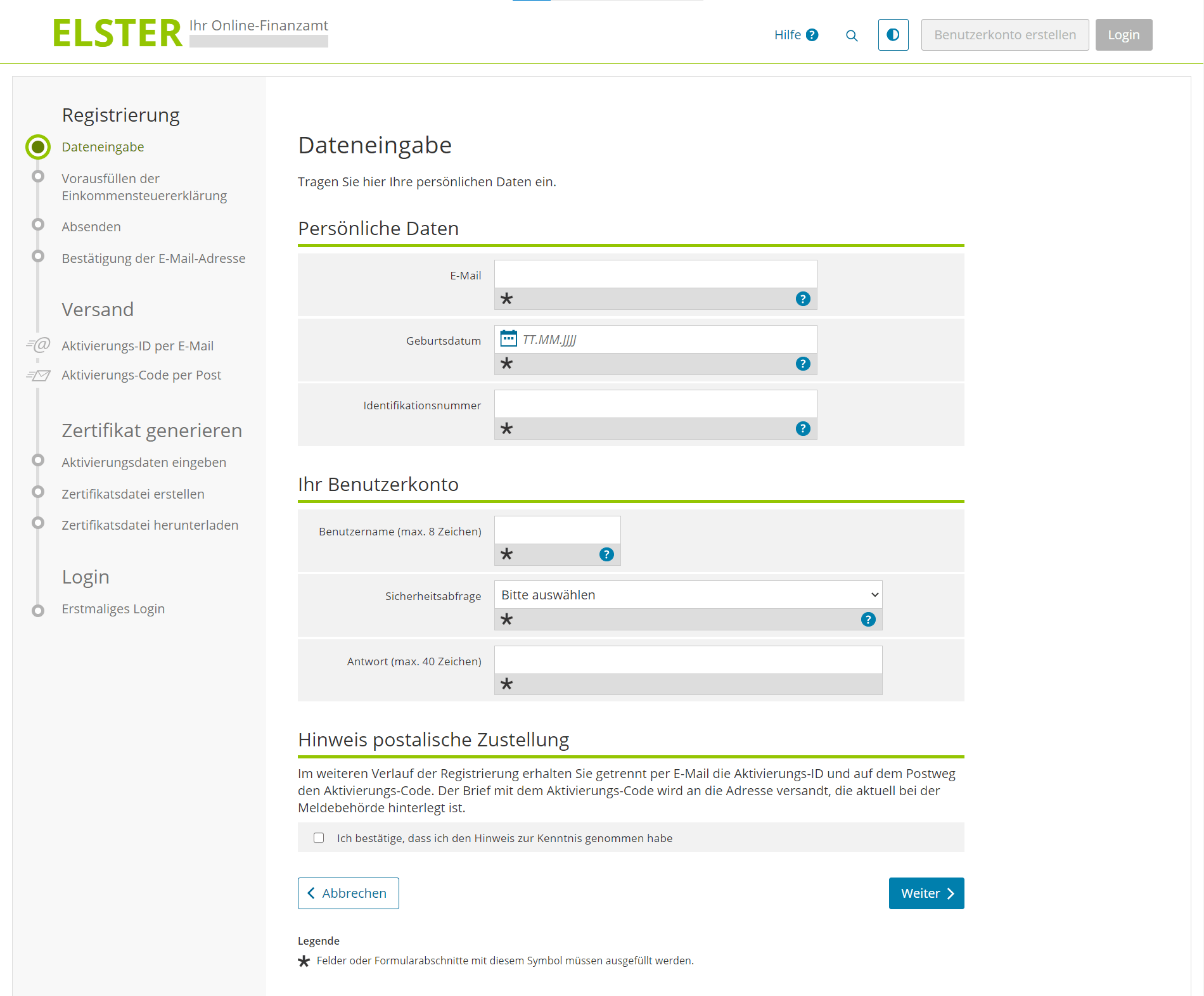 Elster Online/Online-Finanzamt
