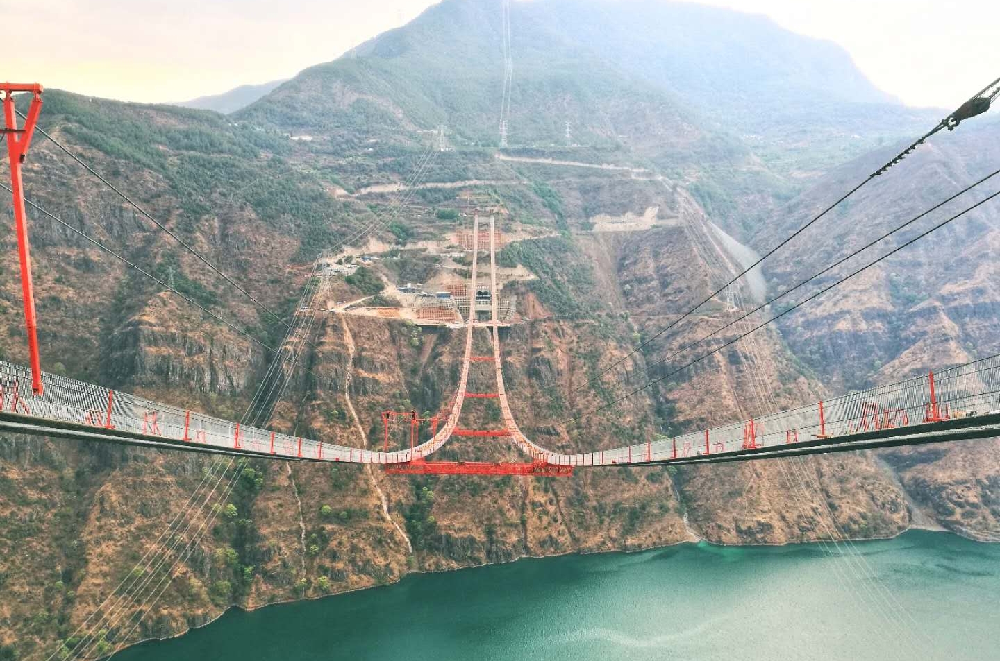开通 2020 高度 230米(750英尺) 最大跨度 1,386米(4,547英尺)桥上净空 461米(1,512英尺) 施工单位 中国交建、中国建筑 金安金沙江大桥是中国云南丽江附近的一座跨越金沙江的悬索桥, 也是世界最高桥梁之一。