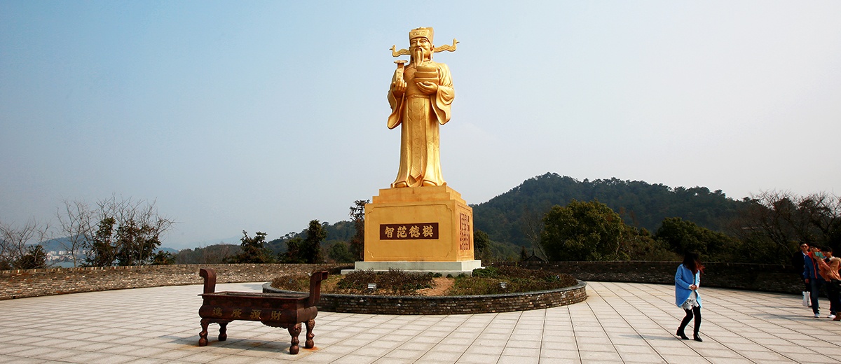 宁波东钱湖又称“万金湖”,以其利溥而言。从“因财成湖”的传说, 到上承钱埭之水而得名的地理印记,到空中俯瞰形似钱袋的巧合, 生而就与“金”、“钱”密不可分。钱湖之名已埋下了某种机缘和 暗示,不过东钱湖虽自古就有“金”、“钱”之名,真正意义上的 精神内核——“财智文化”却是随着商祖范蠡的到来 而被赋予的。范蠡在风光如画的东钱湖畔草耕商营, 书写传奇,也开启了这片湖山对于财富与智慧新的理 解。