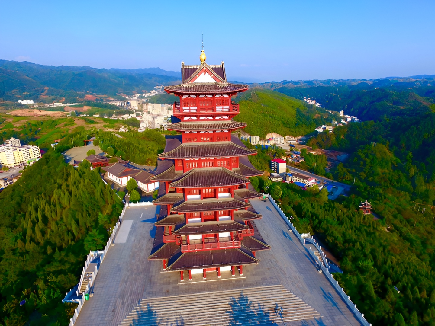 位于商南县鹿城公园,鹿城公园:位于县城东南侧2公里、坐落于鹿城龙山的塔坡之上。塔坡海拔575米,山体浑圆,北南缓,主峰四周有5条小山梁分支于富家汕和马槽沟(鹦鹉沟河)中,可谓之五龙捧圣,山间森林茂密,侧柏四季葱绿。塔坡顶建一座7层44米高的魁星楼,魁星楼是塔坡公园的标志性建筑,魁星乃北斗星系,为魁星点斗之吉祥。仿唐建筑,塔形端庄,装饰华丽,夜景灯光秀丽,似金光宝塔,美轮美奂。