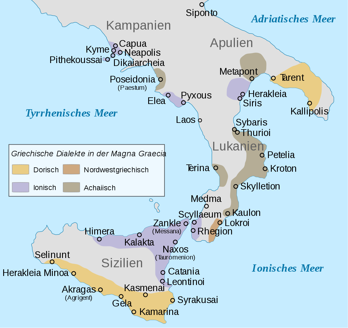 Als Magna Graecia (lateinisch für: „großes Griechenland“; altgriechisch Μεγάλη Ἑλλάς Megalē Hellas) werden die Regionen im antiken Süditalien, oft einschließlich Siziliens, bezeichnet, die von griechischen Siedlern ab dem 8. Jahrhundert v. Chr. kolonisiert wurden.