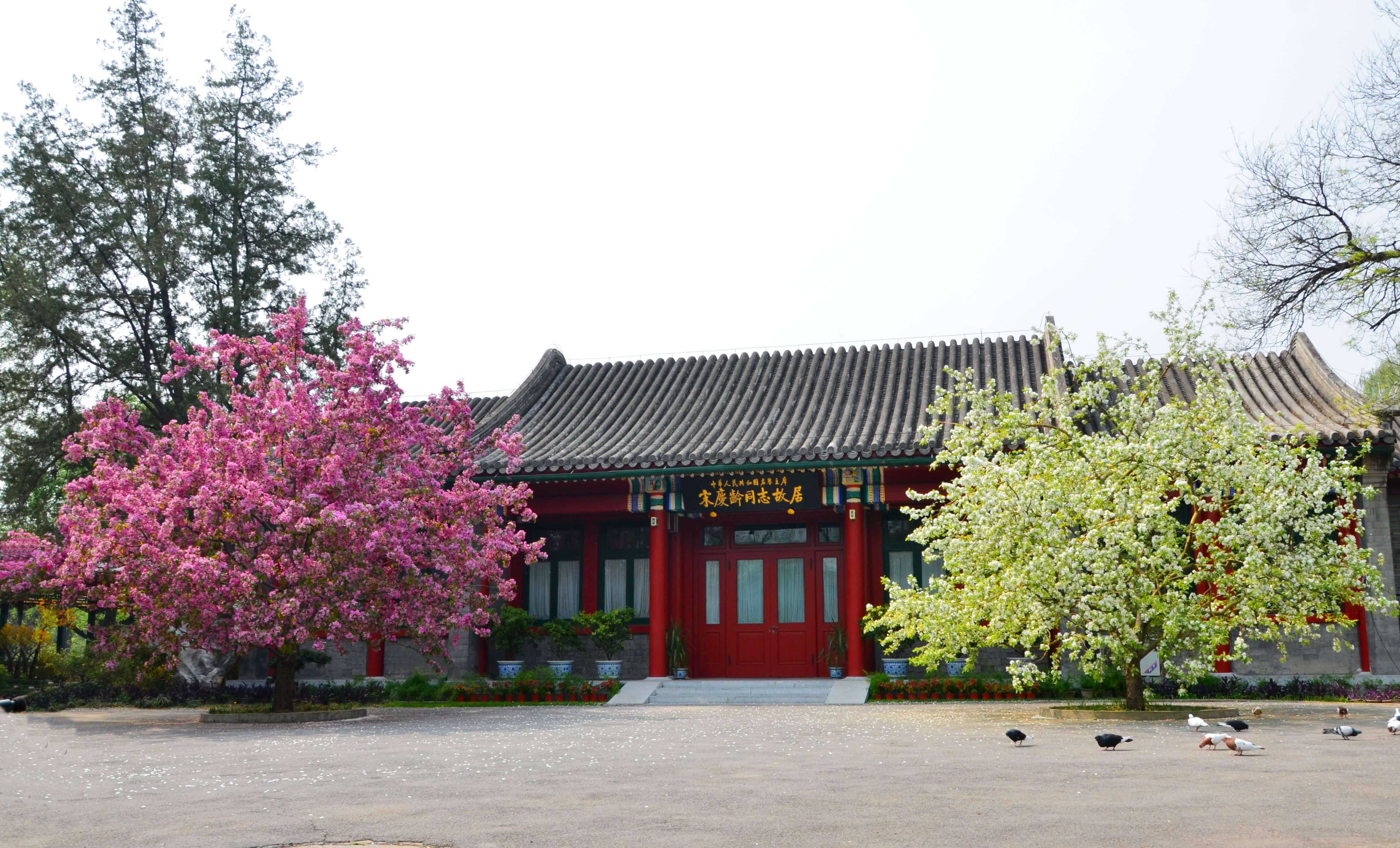 宋庆龄同志故居坐落在北京风景秀丽的什刹海后海北沿。门前水天相映、碧波涟漪,堤岸杨柳轻扬,院内曲径回廊,楼堂亭榭;湖水环绕,山石嶙峋;绿树浓荫,花香四溢。是一处雍容典雅、幽静别致的庭园。故居占地面积两万多平方米,建筑面积约五千平方米。原是中国末代皇帝爱新觉罗·溥仪的父亲醇亲王载沣的府邸花园,也称西花园。
