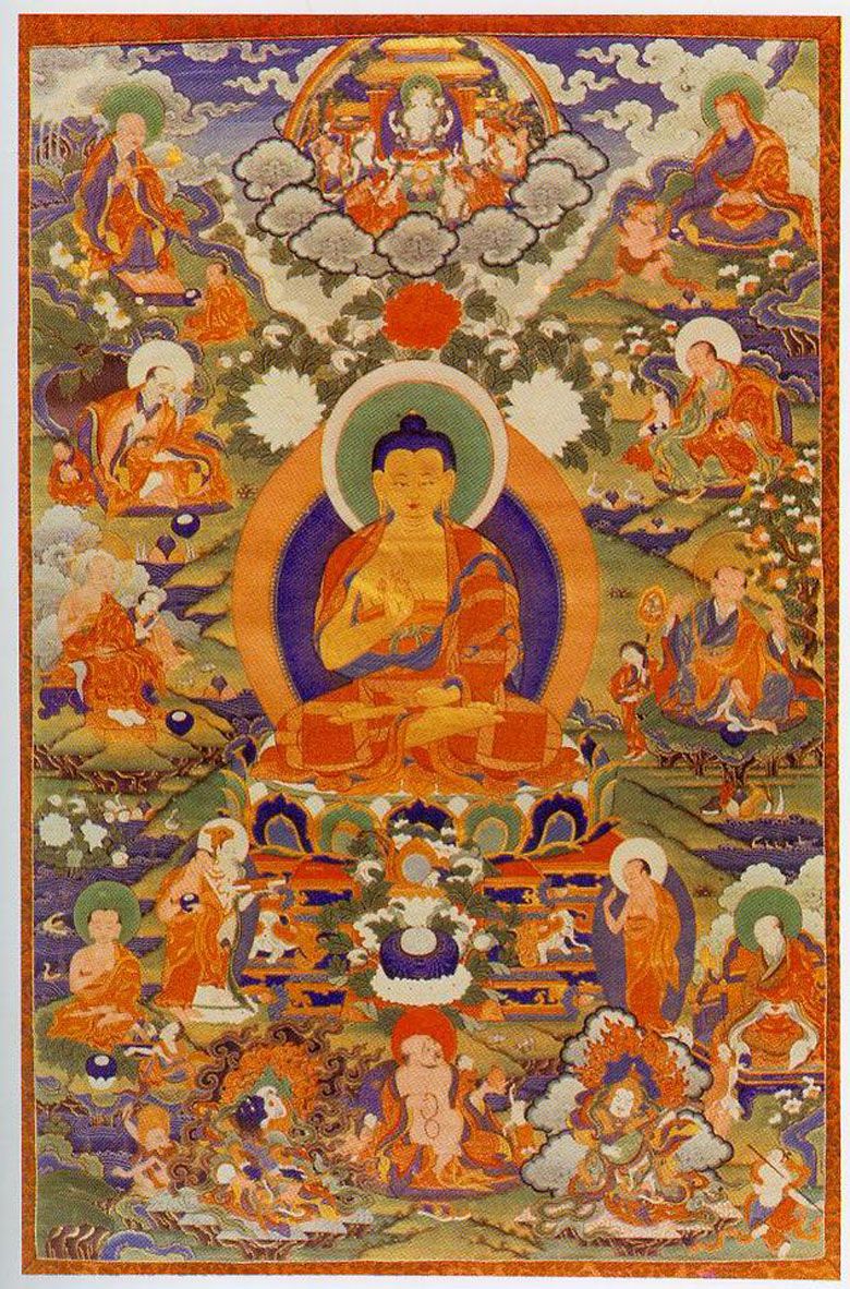 唐卡(藏语:ཐང་ཀ་,威利转写:thang-ka)在藏语意为“松树”,是一种画在布幔、纸上的画像。唐卡兴起于吐蕃时期,可随意移动,便于收藏。也叫唐嘎,唐喀,系藏文音译,指用彩缎装裱后悬挂供奉的宗教卷轴画。唐卡是藏族文化中一种独具特色的绘画艺术形式,题材内容涉及藏族的历史、政治、文化和社会生活等诸多领域,传世唐卡大都是藏传佛教和本教作品。唐卡是藏族文化中一种独具特色的绘画艺术形式。具有鲜明的民族特点、浓郁的宗教色彩和独特的艺术风格,用明亮的色彩描绘出神圣的佛的世界;颜料传统上是全部采用金、银、珍珠、玛瑙、珊瑚、松石、孔雀石、朱砂等珍贵的矿物宝石和藏红花、大黄、蓝靛等植物为颜料以示其神圣。这些天然原料保证了所绘制的唐卡色泽鲜艳,璀璨夺目,虽经几百年的岁月,仍是色泽艳丽明亮。因此被誉为中国民族绘画艺术的珍品,被称为藏族的”百科全书”也是中华民族民间艺术中弥足珍贵的非物质文化遗产。