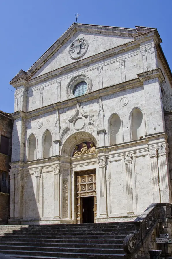 Die Kirche Sant'Agostino in Montepulciano war Gegenstand zahlreicher Bauphasen, bei denen sich lange Pausen und verschiedenen Überarbeitungen ablösten. Der offizielle Baubeginn geht auf das Jahr 1285 zurück, als der damalige Bischof von Arezzo, Guglielmo dei Conti Ubertini, die Grundsteinlegung segnete und damit den Beginn eines Bauprozesses einleitete, der erst im Jahr 1509 abgeschlossen wurde, wie die Inschrift an der Fassade bezeugt, auch wenn man mit ziemlicher Sicherheit behaupten kann, dass das Gebäude um 1440 fast fertiggestellt war.