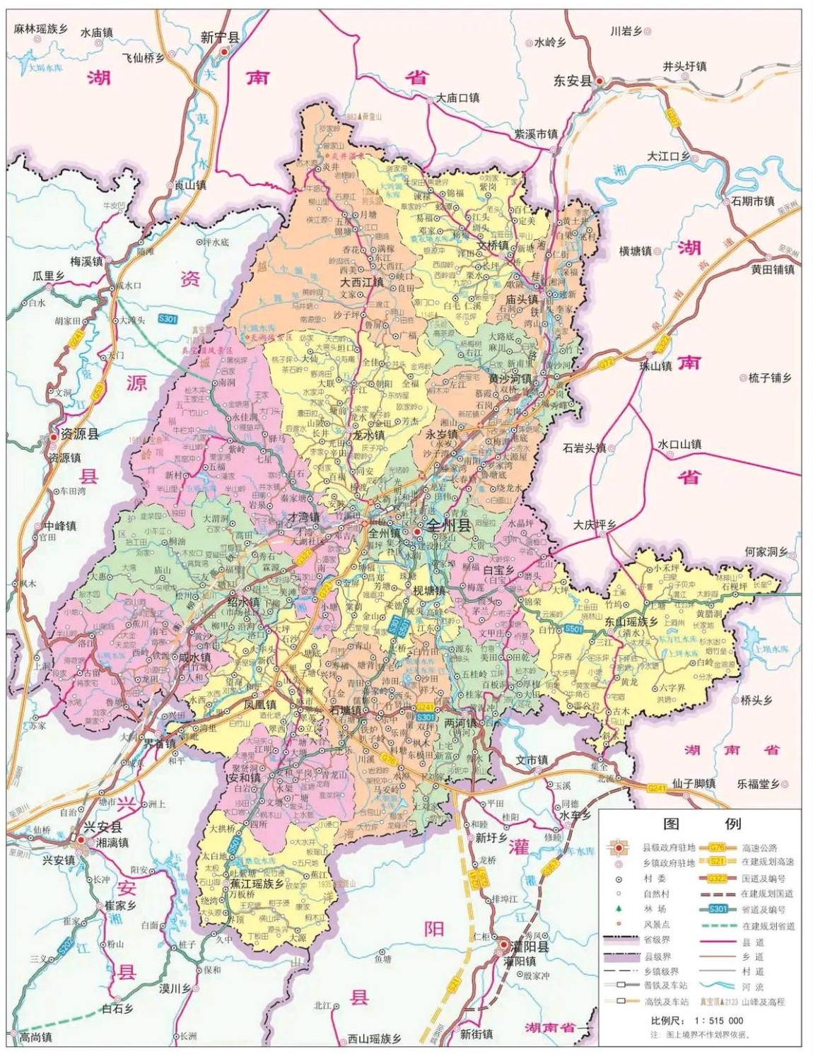 全州县,隶属广西壮族自治区桂林市,位于广西壮族自治区东北部。 总面积4021平方千米。全州县地处岭南亚热带季风区。全州县是一个具有两千多年历史的古邑。自秦置零陵县,汉置洮阳县、并置零陵郡,隋改湘源县,五代后晋置全州,元代升为路,明初改为府,旋降为州,直至清末,民国改为全县,1959年10月更名全州县至今。全州县下辖15个镇、1个乡、2个民族乡: 全州镇、黄沙河镇、庙头镇、文桥镇、大西江镇、龙水镇、才湾镇、绍水镇、石塘镇、咸水镇、凤凰镇、安和镇、两河镇、枧塘镇、永岁镇、蕉江瑶族乡、白宝乡和东山瑶族乡。