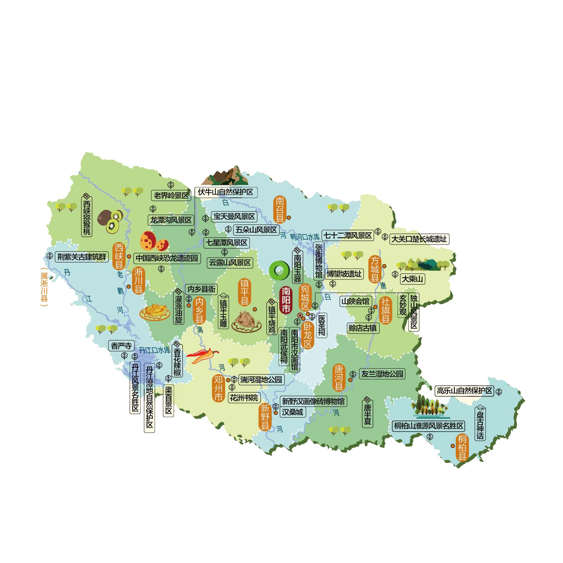 南阳市,简称宛,是中华人民共和国河南省下辖的地级市,位于河南省西南部,因地处伏牛山以南,汉水以北而得名(山南水北)。市境东邻信阳市、驻马店市,东北接平顶山市,西北界洛阳市、三门峡市,西达陕西省商洛市,西南毗湖北省十堰市,南连湖北省襄阳市、随州市。地处豫鄂陕三省交界处伏牛山区与南阳盆地。西北东三面环山,北为秦岭、伏牛山,西为大巴山、武当山,东为桐柏山、大别山。境内属汉水上游、淮河源头,唐河、白河、老灌河、丹江、淇河、湍河等流经。全市总面积26,511平方公里,常住总人口961.5万人。南阳是国务院第二批批准的历史文化名城,也是南水北调中线工程的渠首陶岔渠所在地,被评为中国优秀旅游城市及国家园林城市,宛西风景尤为秀美,山茱萸等特色中草药三分天下西峡有其二。市人民政府驻卧龙区中州路291号址位于南阳市。南阳市下辖2个市辖区、10个县,代管1个县级市。 市辖区:宛城区、卧龙区 县级市:邓州市 县:南召县、方城县、西峡县、镇平县、内乡县、淅川县、社旗县、唐河县、新野县、桐柏县