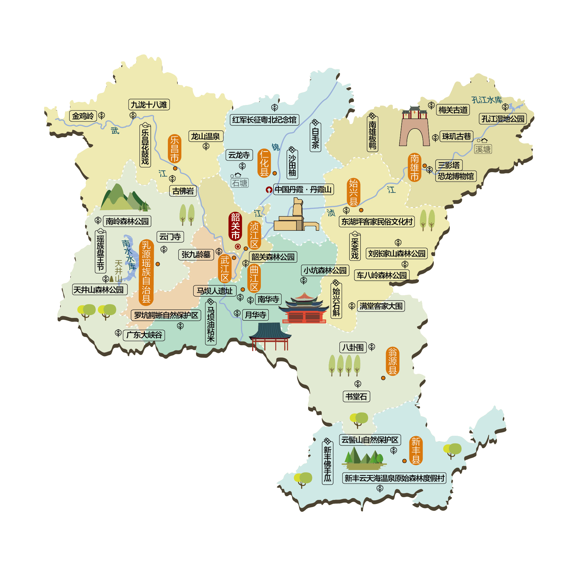 韶关市(官方音译:Shaoguan,传统外文:Shiuchow、Shaokwan,粤音外文:Siu Kwan),简称韶,旧称韶州,是中华人民共和国广东省下辖的地级市,位于广东省北部,粤湘赣三省交界、市境西界清远市,南临广州市、惠州市,东南接河源市,东北毗江西省赣州市,西北达湖南省郴州市,市政府驻浈江区风度北路75号。 韶关是广东省历史文化名城,还是广东省规划建设的粤北区域性中心城市和韶关都市区的核心城市,是全国交通枢纽城市之一,韶关有两千多年历史,抗日战争时期,韶关曾成为广东临时省会。地处粤北,外接湘赣,内联珠三角,自古是中国南方的交通要冲,素有广东的北大门之称,是华北及长江中下游地区与华南沿海之间最重要的陆上通道和关口,粤湘赣交界地区商品集散中心。而且是客家人的主要聚居地之一。韶关市现辖3个市辖区、4个县、1个自治县,代管2个县级市。 市辖区:武江区、浈江区、曲江区 县级市:乐昌市、南雄市 县:始兴县、仁化县、翁源县、新丰县 自治县:乳源瑶族自治县