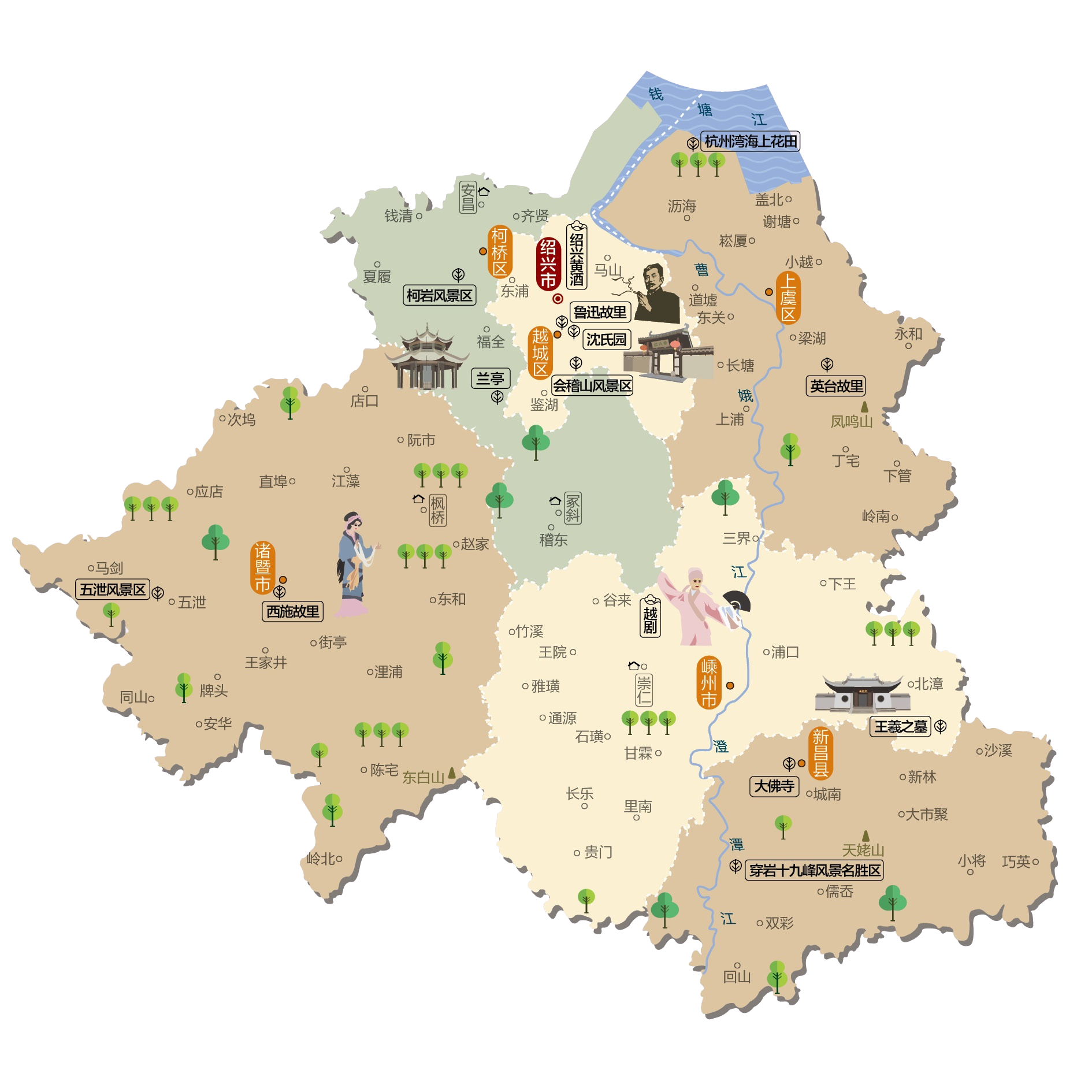 绍兴市(吴语:Zau Shin),简称越,古称越州、会稽、山阴,是中华人民共和国浙江省下辖的地级市,地处中国华东地区,浙江省中北部,位于浙江省杭州湾南岸。市境西北临杭州市,北隔钱塘江与嘉兴市相望,东邻宁波市,西南接金华市,东南接台州市。地处浙东盆地丘陵北部与宁绍平原西部,地势南高北低,会稽山纵贯市境,以西为诸暨盆地,以东为新嵊盆地。曹娥江流贯市境北流入钱塘江,西部有浦阳江、杭甬运河。钱塘江南岸平原水网密布,湖泊众多,为典型的江南水乡。全市总面积8,274.79平方公里,市人民政府驻越城区洋江西路589号。 绍兴是国家历史文化名城、越文化中心,出产的黄酒(又称老酒)闻名遐迩。绍兴纺织业、小电机、节能照明、生物酿造业发达,纺织业出口产品占世界纺织面料交易额的60%,绍兴中国轻纺城是世界最大的纺织品交易市场。绍兴市现辖3个市辖区、1个县,代管2个县级市。 市辖区:越城区、柯桥区、上虞区 县级市:诸暨市、嵊州市 县:新昌县