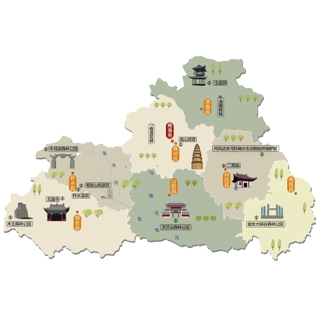 商洛市,简称商,古称上洛、上雒、商州、商雒,是中华人民共和国陕西省下辖的地级市,位于陕西省东南部,秦岭南麓,与鄂豫两省交界,因境内商山、洛水而得名。市境北界渭南市,西临西安市,西南达安康市,南邻湖北省十堰市,东毗河南省南阳市、三门峡市。地处秦岭东段南侧,地势西北高,东南低,山岭和峡谷相间。主要河流有属黄河水系的洛河,以及属长江水系的丹江、金钱河、乾佑河、洵河等。全市总面积19,587平方公里,人口235.74万,市人民政府驻商州区。商洛市下辖1个市辖区、6个县。 市辖区:商州区 县:洛南县、丹凤县、商南县、山阳县、镇安县、柞水县