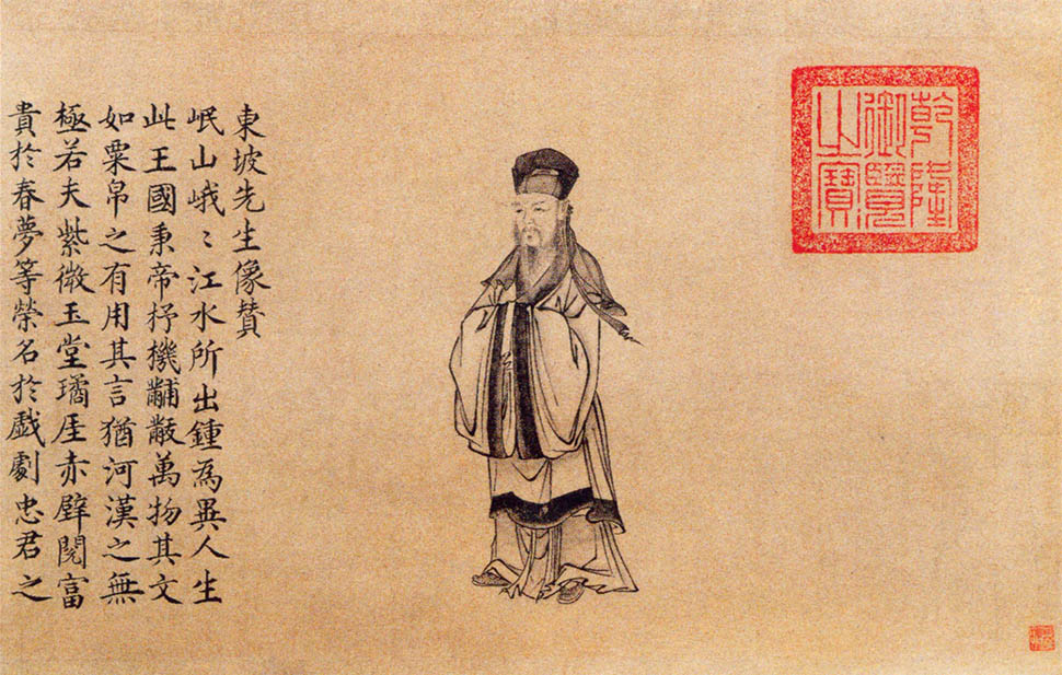 《治平帖》卷,北宋,苏轼书,纸本,行书,纵29.2厘米,横45.2厘米。此帖当是苏轼于北宋熙宁年间在京师时所作,时年30余岁。该帖笔法精细,字体遒媚,与苏轼早年书法特征吻合,正如赵孟頫所称“字划风流韵胜”。卷末有赵孟頫、文徵明、王穉登题跋。鉴藏印有“商丘宋荦审定真迹”、“吴江张基德载图书”二方。本卷引首有明人所画苏轼像及释东皋妙声所书《东坡先生像赞》。