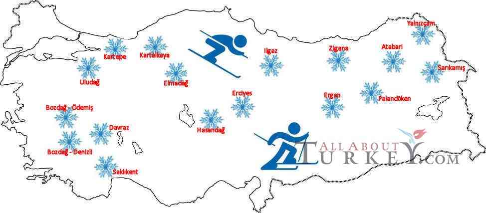 There are many other smaller skiing areas in Turkey such as Hasandagi in Aksaray, Kop mountain in Bayburt, Akdag in Ladik - Samsun, and Yildiztepe at Kadincayiri in Cankiri - Ilgaz. Future plans are to develop these resorts as well as adding new skiing resorts in other areas of Turkey. The total bed capacity at various Turkish ski resorts was around 9,500 beds by the end of 2015, but with investments in the future and govenment plans it's estimated to reach 78,000 beds soon. (Quelle:https://www.allaboutturkey.com/ski.html)