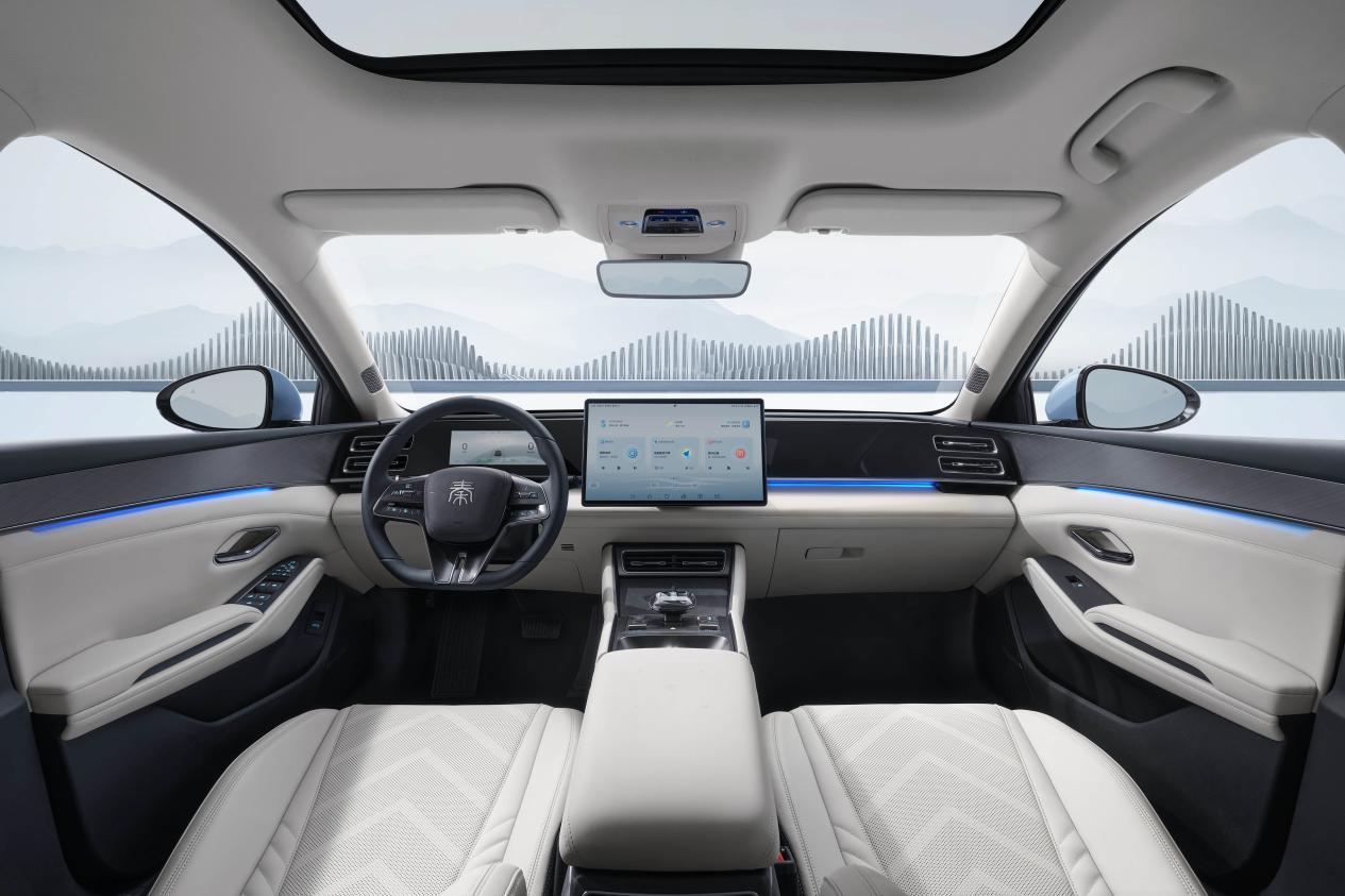 Das Dual-Mode-Hybridsystem DM-i der fünften Generation von BYD ermöglicht dem Motor einen thermischen Wirkungsgrad von 46,06 Prozent, einen Kraftstoffverbrauch von 2,9 l für 100 km Stromverlust und eine kombinierte Reichweite von 2.100 km. Die Länge, Breite und Höhe betragen jeweils 4830mm/1900mm/1495mm, der Radstand 2790mm