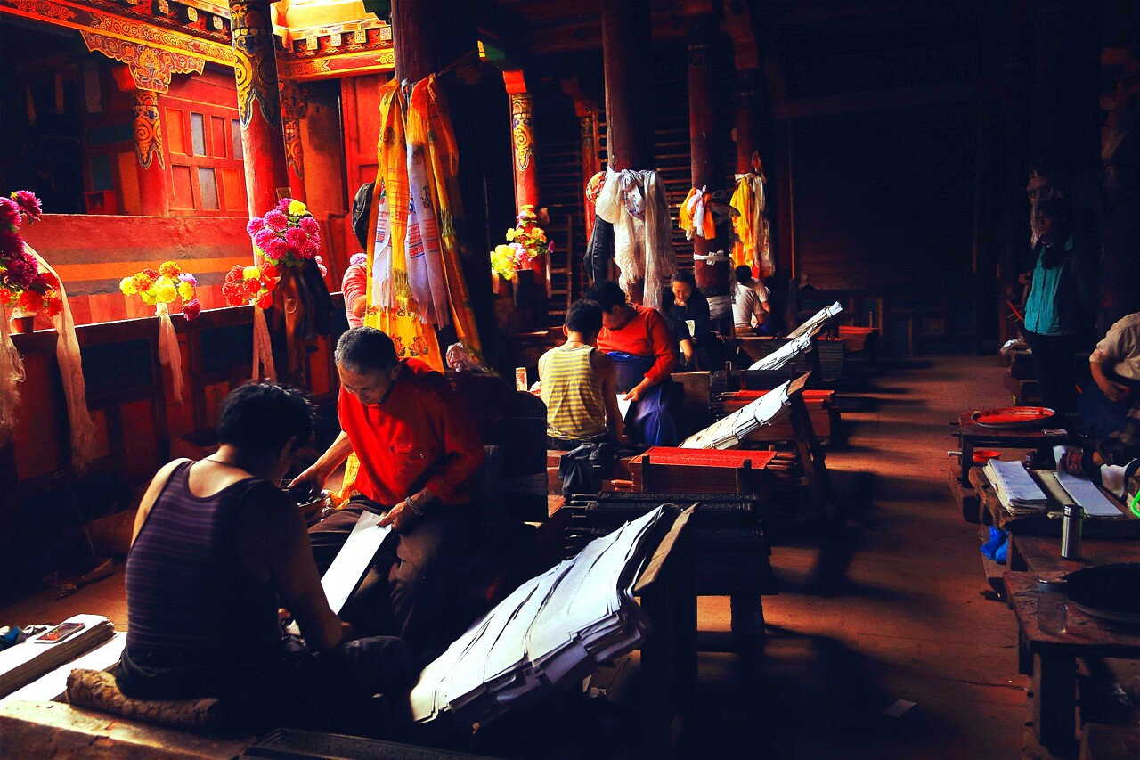 При типографии хранится двести тысяч деревянных матриц для книг, при этом 70% всего наследия тибетской литературы содержится на этих матрицах.[7].