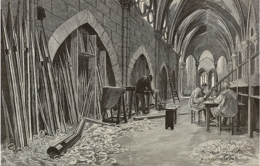 The cathedral was begun in 1160 and largely completed by 1260, though it was modified frequently in the following centuries. In the 1790s, Notre-Dame suffered desecration during the French Revolution when much of its religious imagery was damaged or destroyed. Soon after the publication of Victor Hugo's novel The Hunchback of Notre Dame in 1831, popular interest in the building revived. A major restoration project supervised by Eugène Viollet-le-Duc began in 1845 and continued for twenty-five years. Beginning in 1963, the facade of the Cathedral was cleaned of centuries of soot and grime, returning it to its original color. Another campaign of cleaning and restoration was carried out from 1991-2000.[6]