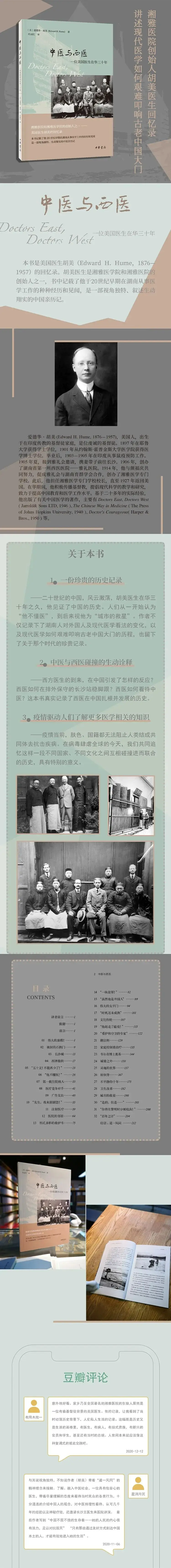 中医是在厚重的历史积淀中从古代走到今天的,它不仅具有医学层面的意义,背后还蕴含着丰富的传统文化。西医与之相较是后来者,它跟随着西方传教士、职业医生等人的步伐,来到古老的中华大地。不可避免地,两者在同一时空相遇了。胡美博士像所有西医一样,从学生时代起接受的便是实验科学方法,一开始也对中医的诊疗方式表示过怀疑。然而,他从一点一滴中慢慢体会到,“在古代医学体系中,存在着某些未知的价值。古老的诊断和治疗方法并非完全没有道理。对于中医取得的一些疗效,西医也无法简单地解释”。