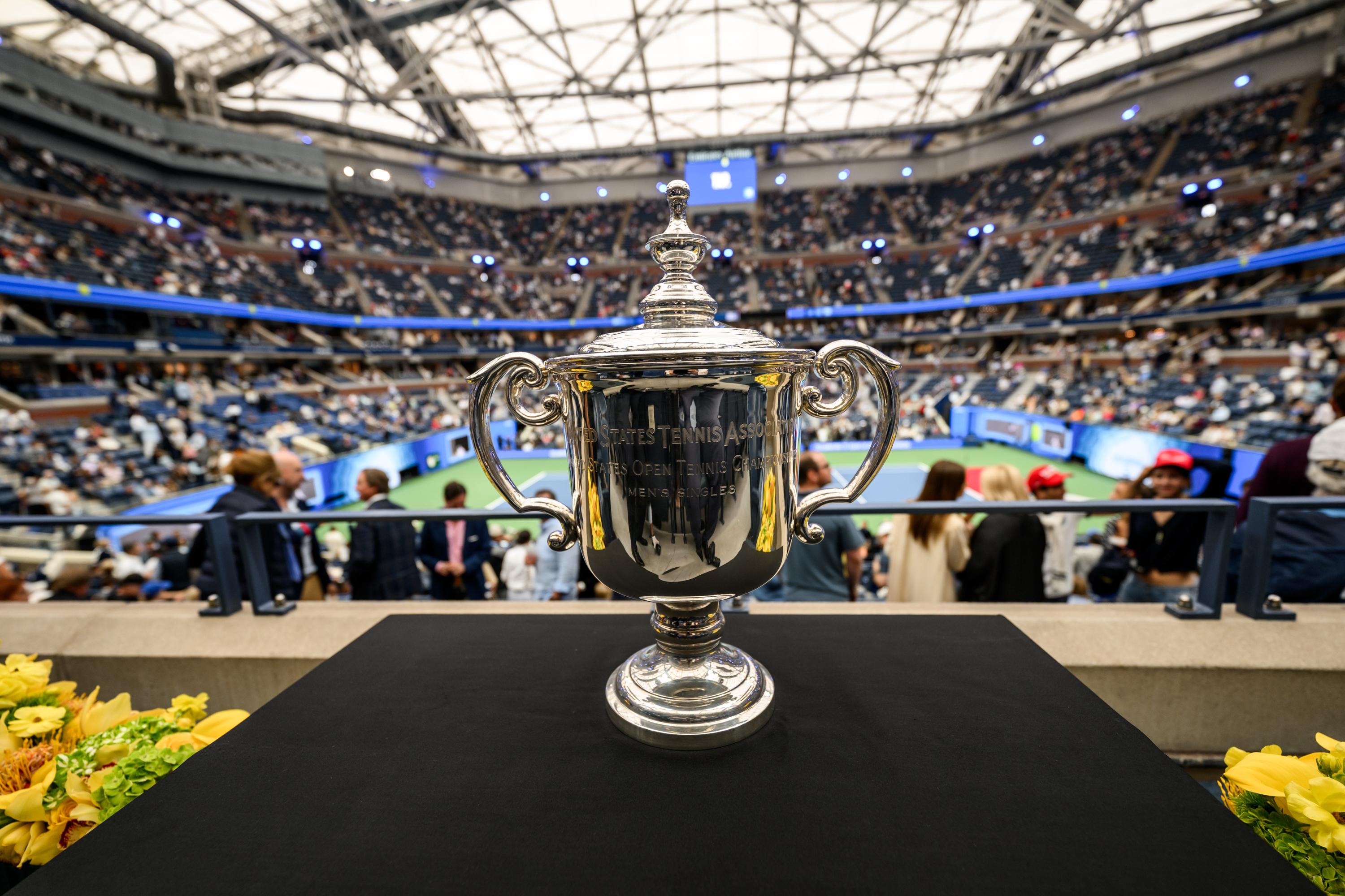 Die Trophäe für das Herreneinzel der US Open ist ein prestigeträchtiger Pokal aus Sterlingsilber, der von Tiffany & Co. entworfen wurde. Er ist 45,7 cm hoch und wiegt etwa 4 kg. Er wird in rund 66 Stunden Handarbeit gefertigt und zeichnet sich durch ein detailreiches, traditionelles Design aus, das den Höhepunkt des amerikanischen Tennissports repräsentiert.