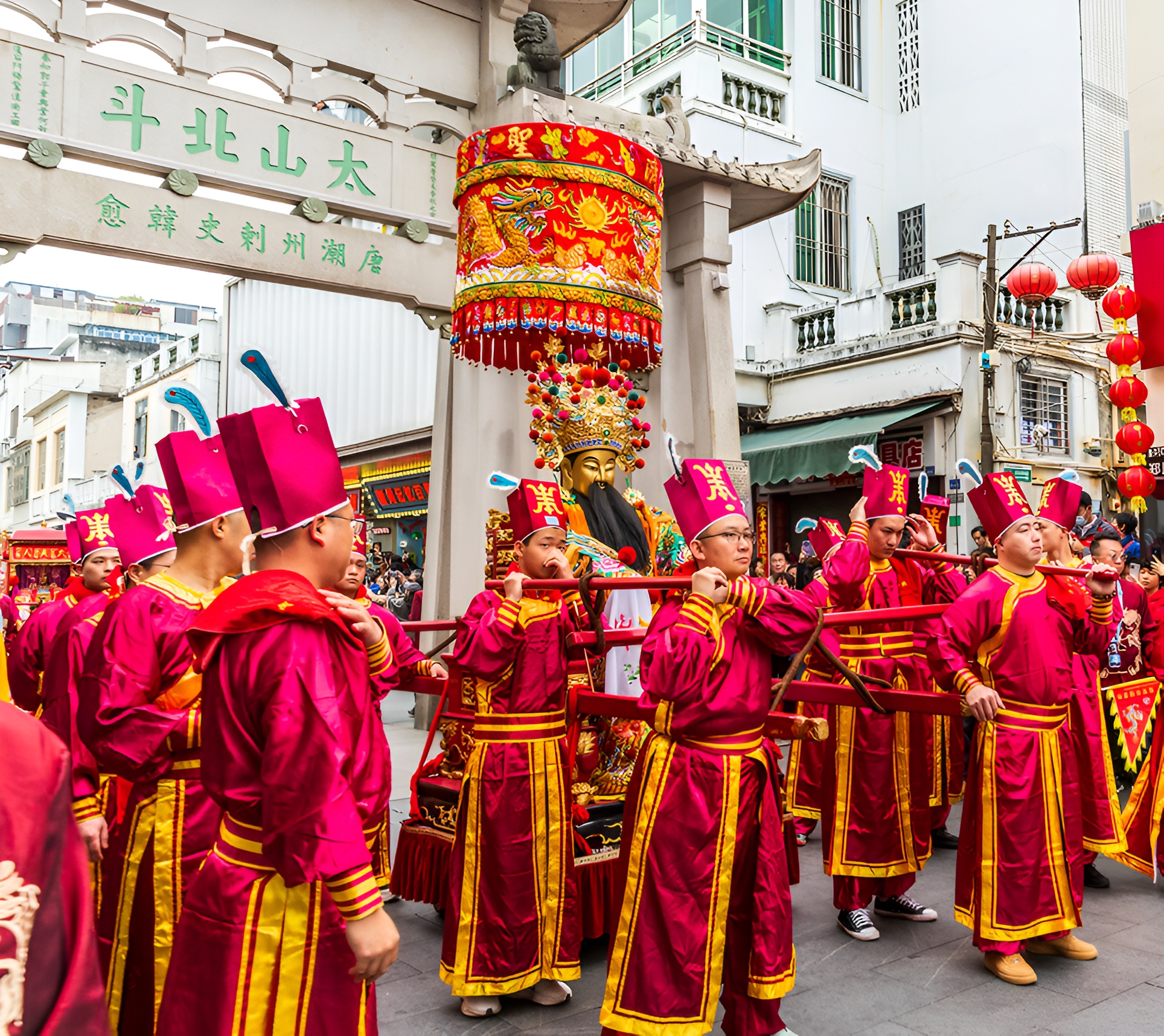 营老爷 “老爷”在潮汕地区是指一个镇或村的守护神,潮汕各地的大老爷名目众多。其中有进入朝廷规定把典的神明,如城隍、关爷、妈祖等等;有佛道诸神,如南极大帝、玄天上帝、吕祖等等;更多的是民间创设奉祀的杂神,如三山国王、安济圣王、双忠圣王、雨仙爷、水仙爷、龙尾爷、珍珠娘等等。一般是在每年的农历正月,在一个镇内每日一村各村轮流“闹热”(相当于北方的庙会)并且营老爷。 “营老爷”是一个祭祀活动,在晚上进行,村里的青壮年会抬着八抬大轿,抬着老爷走遍村里的大路和小巷,游行队伍庞大,队伍包括标手(扛标旗),牌手(举牌),轿夫,乐手组成。“营老爷”是祈求今年风调雨顺,全村平安。营老爷时村民可以用手摸一下老爷,相传可以带来好运气并且保一年平安。