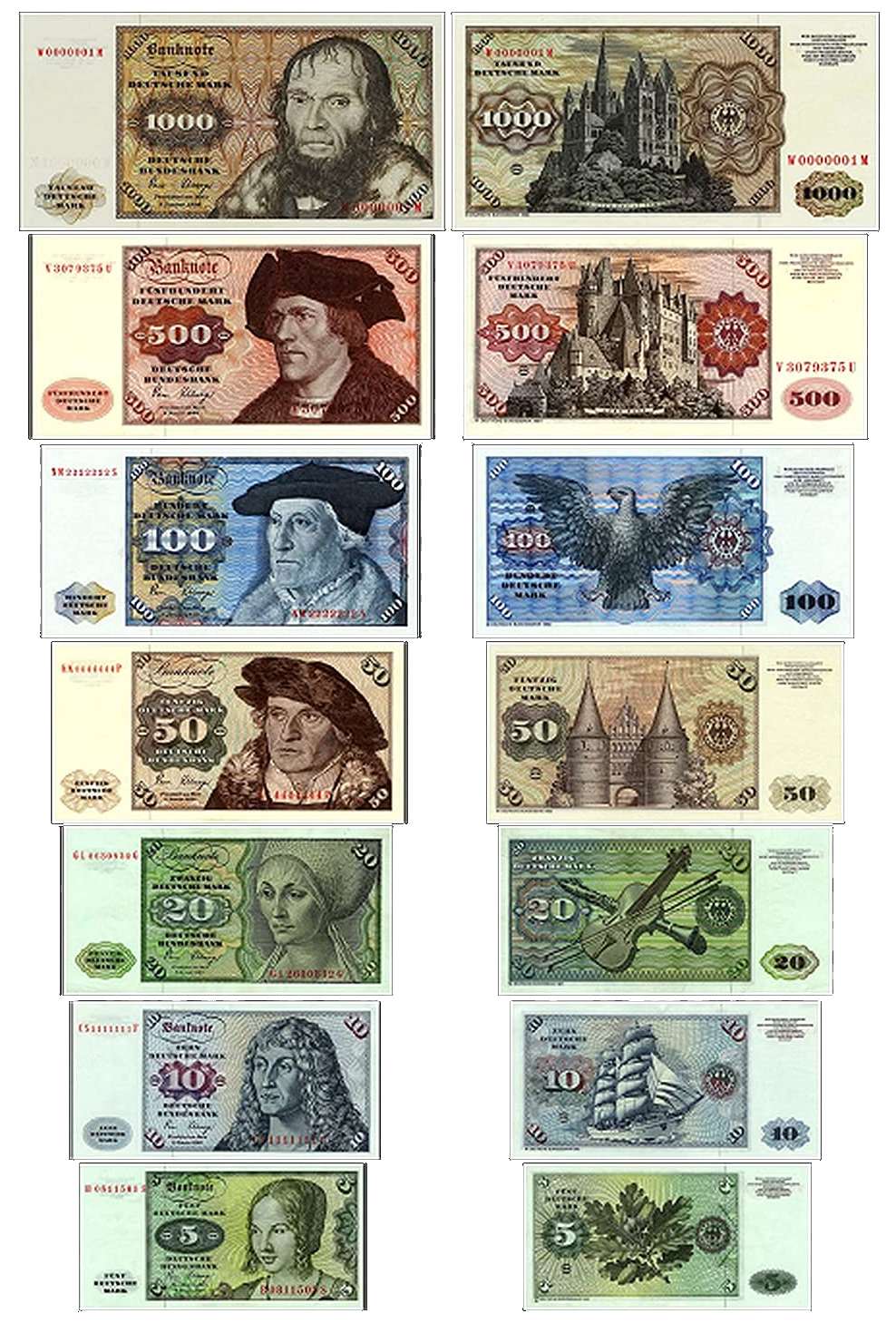 10, 20, 50, 100, 500, 1000 finnische Mark