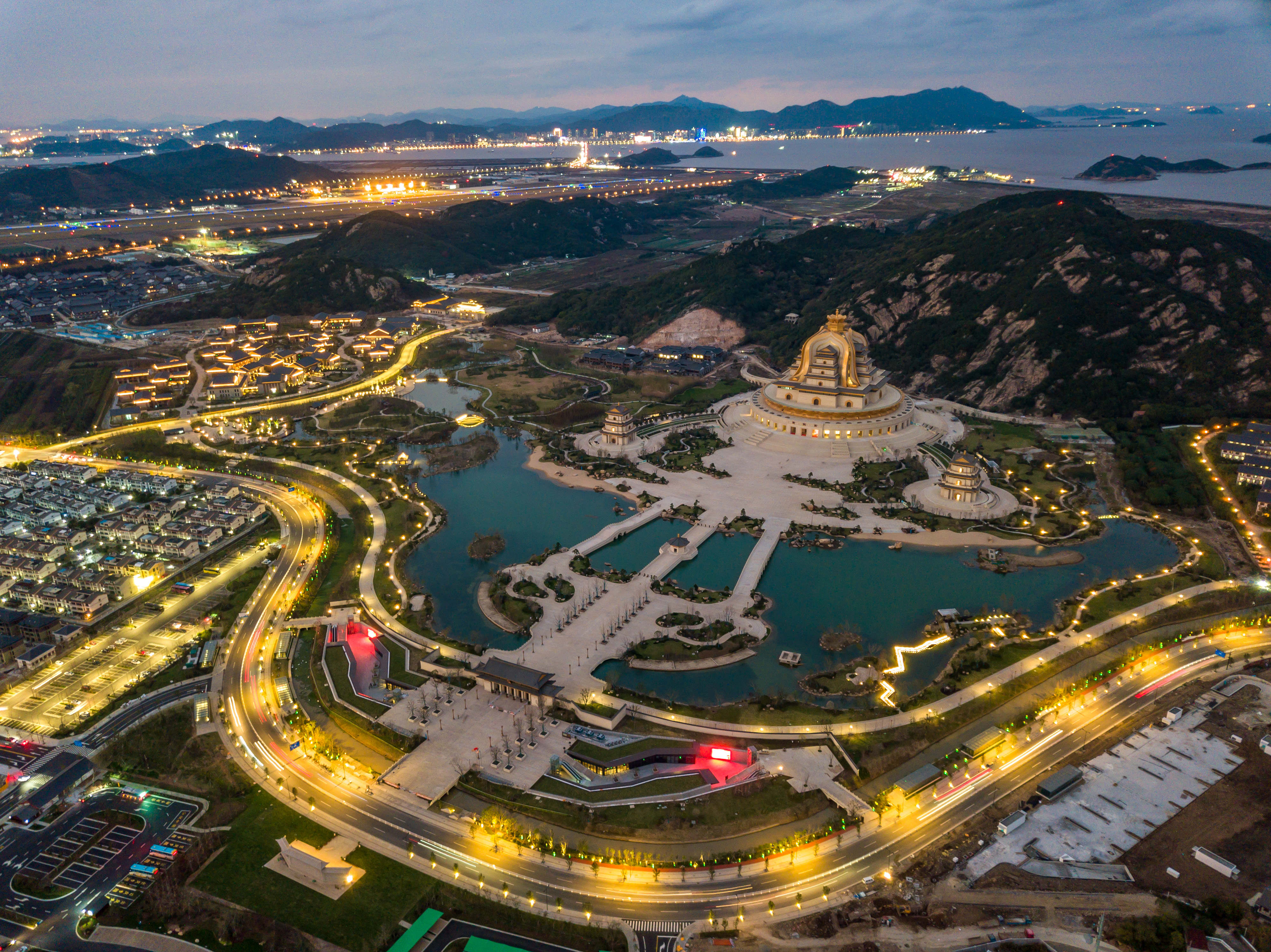 “观音法界”(观音文化园)项目位于朱家尖,占地面积约2500亩 [9],总建筑面积约30万平方米,主要由观音圣坛、正法讲寺暨中国佛学院普陀山学院女众部、观音村(居士学院)、中国佛学院普陀山学院、普隐精舍等多个功能单体群落,其中观音圣坛是观音法界的核心标志建筑。 “观音法界”项目,集宗教、文化体验、艺术展示、文化交流、观光服务等功能于一体,是世界上以观音为原型的佛教建筑,也是世界上最大规模体量的佛教文化综合项目。