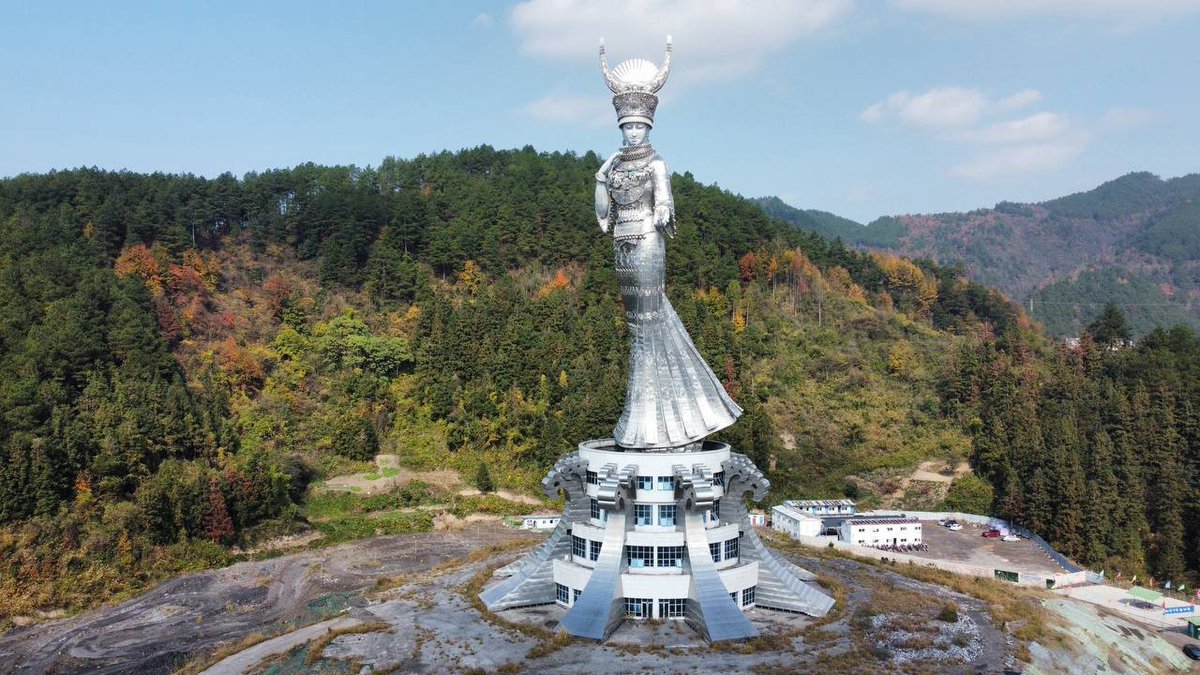 仰阿莎雕像位于贵州省黔东南州剑河县仰阿莎湖畔,2017年竣工,是世界最高苗族美神雕像。雕像总高88米(基座22米,雕像66米),以不锈钢打造,展现了苗族传说中追寻爱情与自由的美神形象。地理位置: 贵州省黔东南苗族侗族自治州剑河县清水江边。 设计寓意: 取自苗族传统节日“二月二”和“六月六”,高66米寓意六月六,基座22米寓意二月二。雕像造型为身着盛装、端庄的苗族美女。 历史与地位: 2017年落成,被认证为世界上最大的苗族女神像。 文化背景: 仰阿莎是苗族传说中的美神,象征着对生命和爱情的赞叹,其传说被列入国家级非物质文化遗产。