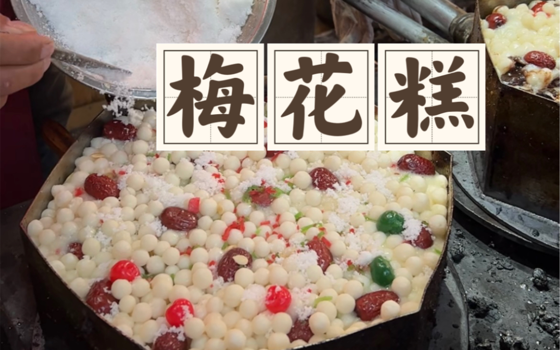 梅花糕是江苏南京、苏州、无锡等江南地区的一种著名的风味特色小吃。源于明朝,发展到清朝时就成为江南地区最著名的传统特色糕类小吃。相传乾隆皇帝下江南时见其形如梅花,色泽诱人,故作品尝。入口甜而不腻、软脆适中、回味无穷,胜过宫廷御点,拍手称快。因其形如梅花,便赐名梅花糕,流传。梅花糕和海棠糕类似,呈金黄色,松软可口,老少皆宜。