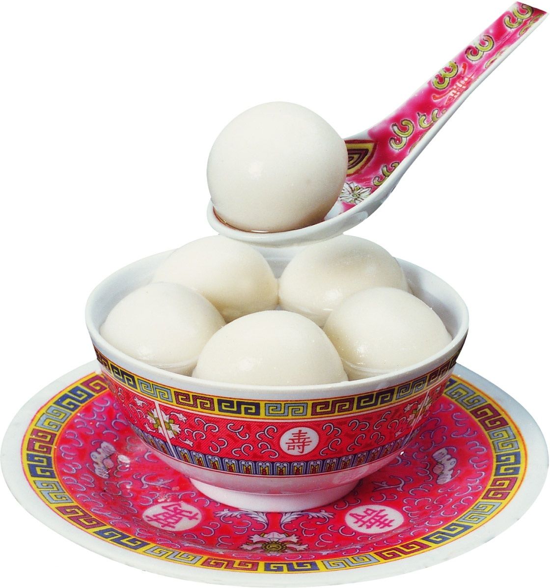 汤圆, im Wasser gekochte Klebereisbällchen, manchmal mit Füllung /Klößchen aus klebrigem Reismehl mit süßer Füllung zum Laternenfest