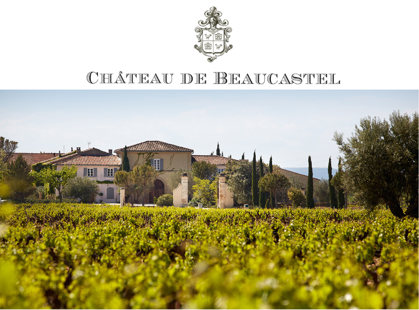Château de Beaucastel ist ein magischer Ort, umgeben von Hügeln, die mit Wein, 100 Jahre alten Olivenbäumen und Trüffeleichen bepflanzt sind. Hier erblüht die Natur, ist frei und ungezwungen. Alte Reben mit verknoteten Wurzeln werden im traditionellen Gobelet Stil, auf den typischen Böden mit großen runden Kieseln, erzogen. Wenn der Mistral – der legendäre Wind der Alpen- übers Land weht, flüstert er leise durch das Rhonetal, kühlt die Weine und gibt ihnen die Aromen der Garrigue. Er hat den süd