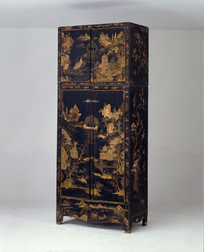黑漆描金山水圖頂箱立櫃 黑漆描金山水图顶箱立柜