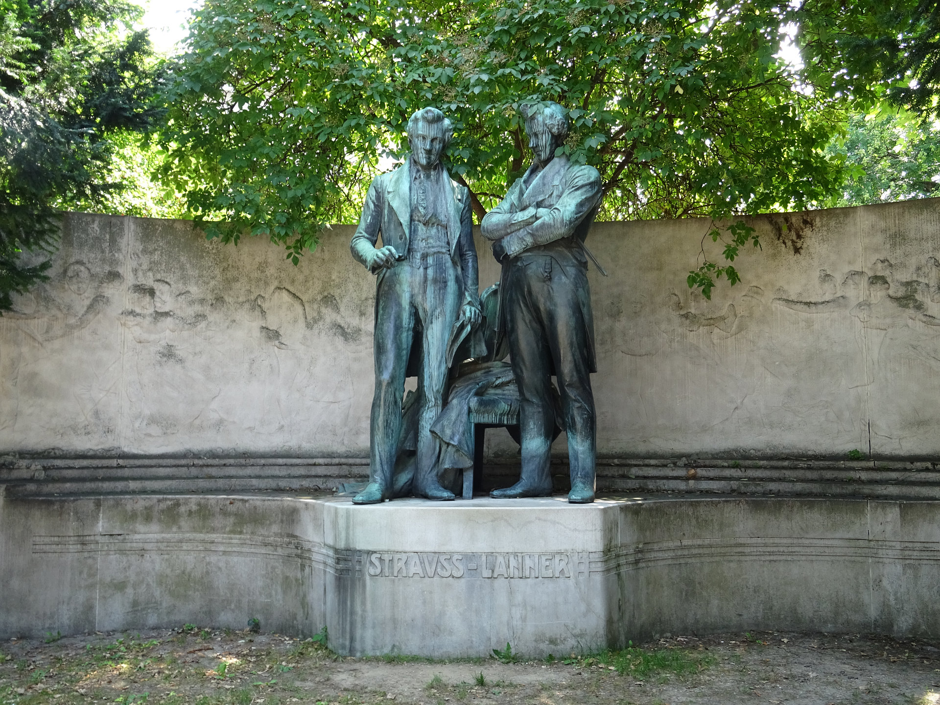 Strauß-Lanner-Denkmal (1., Rathauspark), darstellend Josef Lanner und Johann Strauß (Vater). Das Denkmal, ursprünglich für den 7. Bezirk geplant, wurde am 21. Juni 1905 enthüllt, doch löste seine Aufstellung an versteckter Stelle im Rathauspark heftige Proteste aus (so auch von Otto Wagner). Den Gesamtplan für das Denkmal entwarf Robert Oerley (der auch die Architektenteile schuf), die Bildhauerarbeiten führte Franz Seifert aus.