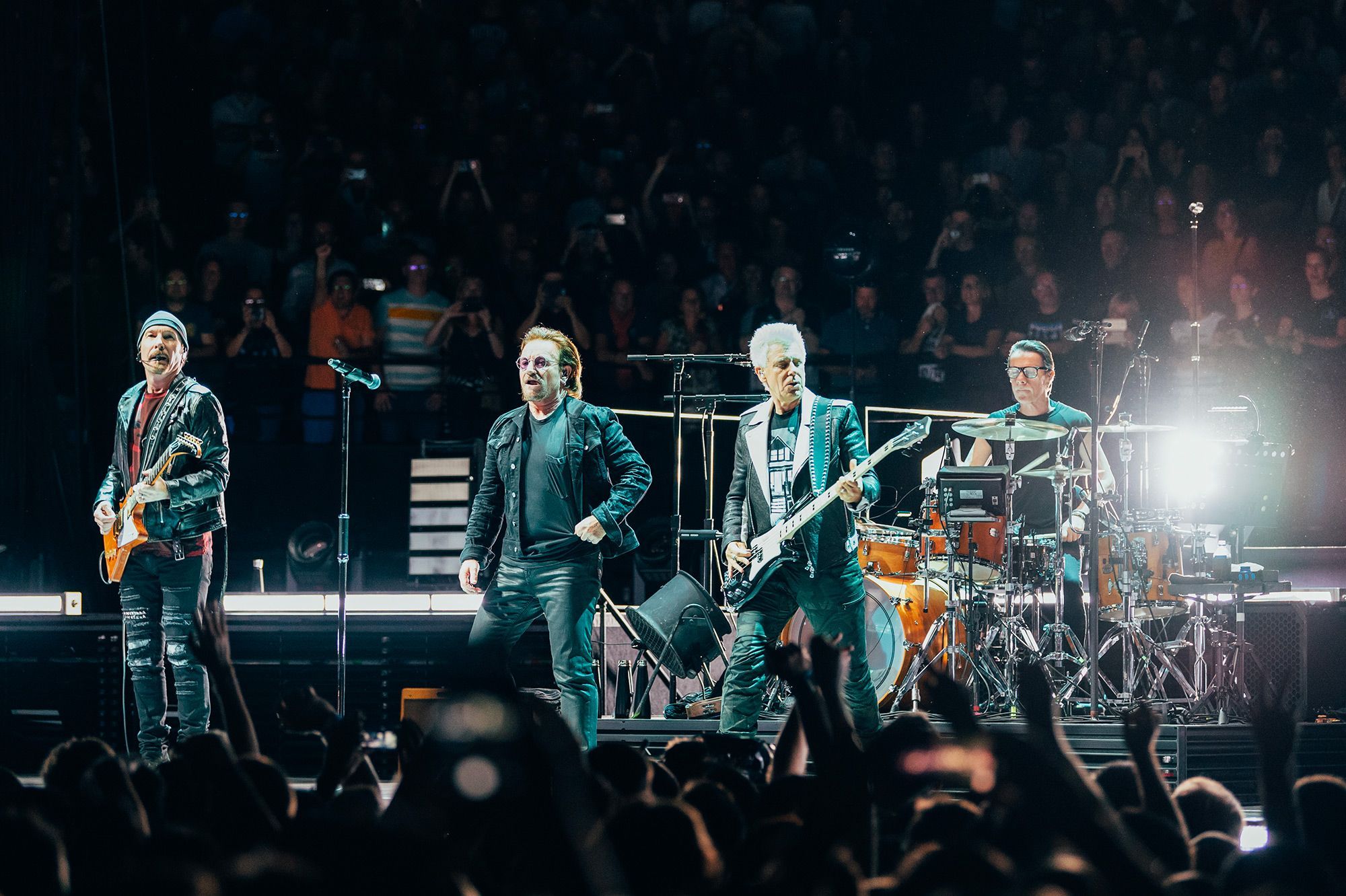 U2 ist eine irische Rockband. Sie entstand 1976 in Dublin, fand 1978 zu ihrem heutigen Namen und besteht seitdem aus dem Leadsänger Bono (Paul David Hewson), dem Gitarristen The Edge (David Howell Evans), dem Bassisten Adam Clayton und dem Schlagzeuger Larry Mullen junior. In den 1980er-Jahren wurde die Band kontinuierlich populärer und veröffentlichte seither zahlreiche Nummer-eins-Hits in verschiedenen Ländern.