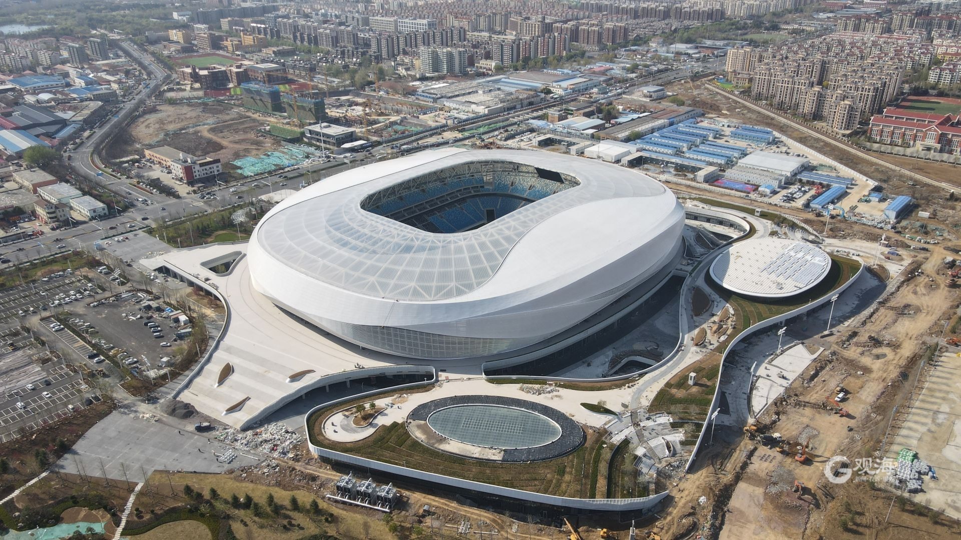 位置 中国青岛市城阳区靖城路1号 所有者 青岛市人民政府 营运者 青岛北岸控股集团 座位数 50,000个 场地大小 105米×68米 表面 锚固草(95%天然草+5%人工草) 动工 2020年7月31日 启用 2023年4月25日 建筑费用 22.5亿人民币 建筑师 中国建筑西南设计研究院 总承包商 中建八局第四建设有限公司 客户 青岛海牛足球俱乐部(2023年起)